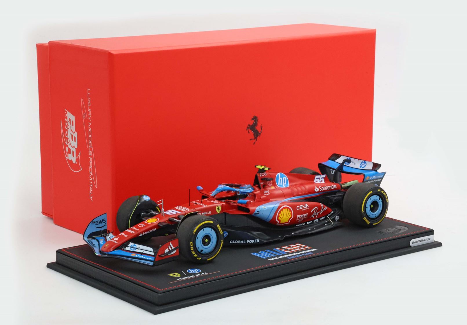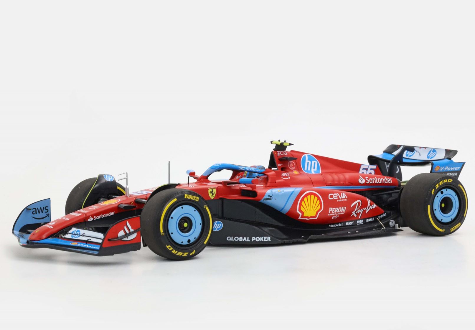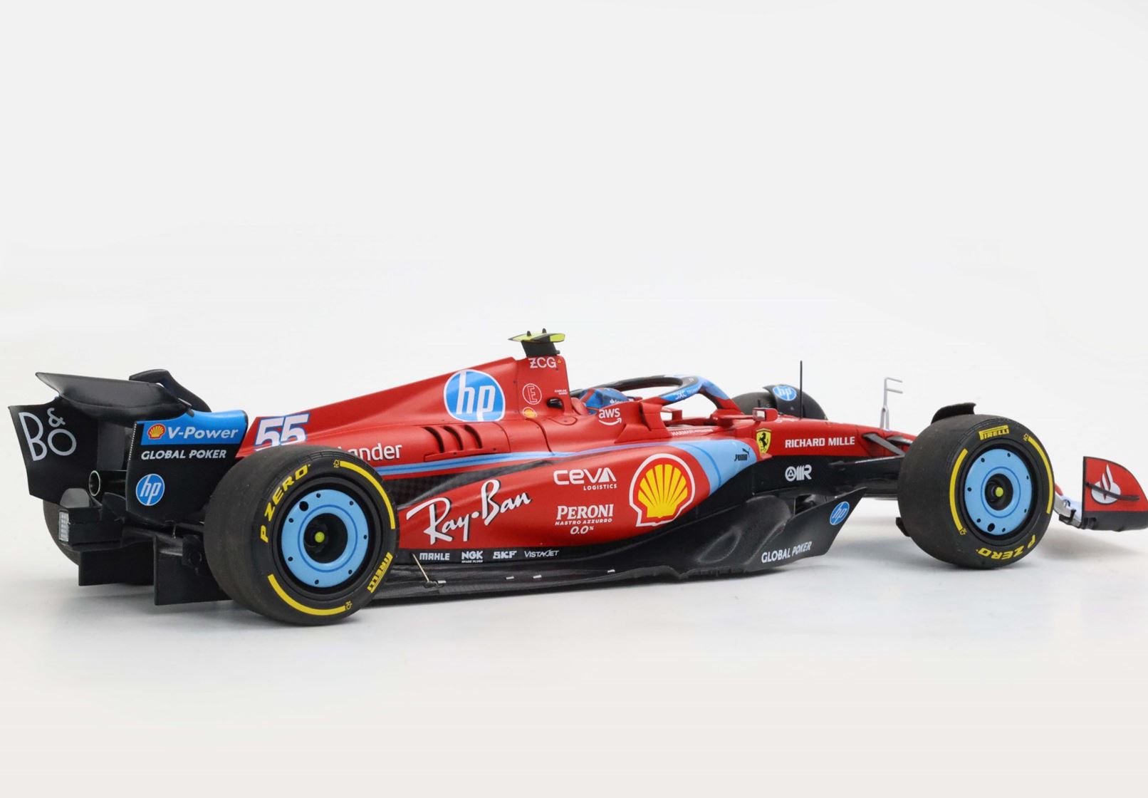 Una speciale livrea per riscoprire due colori, per anni parte della storia di Ferrari. Una livrea unica realizzata solo per il GP di Miami. La SF-24 si è tinta di due tonalità d'azzurro. L'Azzurro La Plata era il portafortuna di Alberto Ascari nelle sue stagioni più vincenti. L’Azzurro Dino, colore più scuro delle divise delle maestranze di Maranello, è stato usato per l'ultima volta anche sulla tuta di Regazzoni nel 1974.