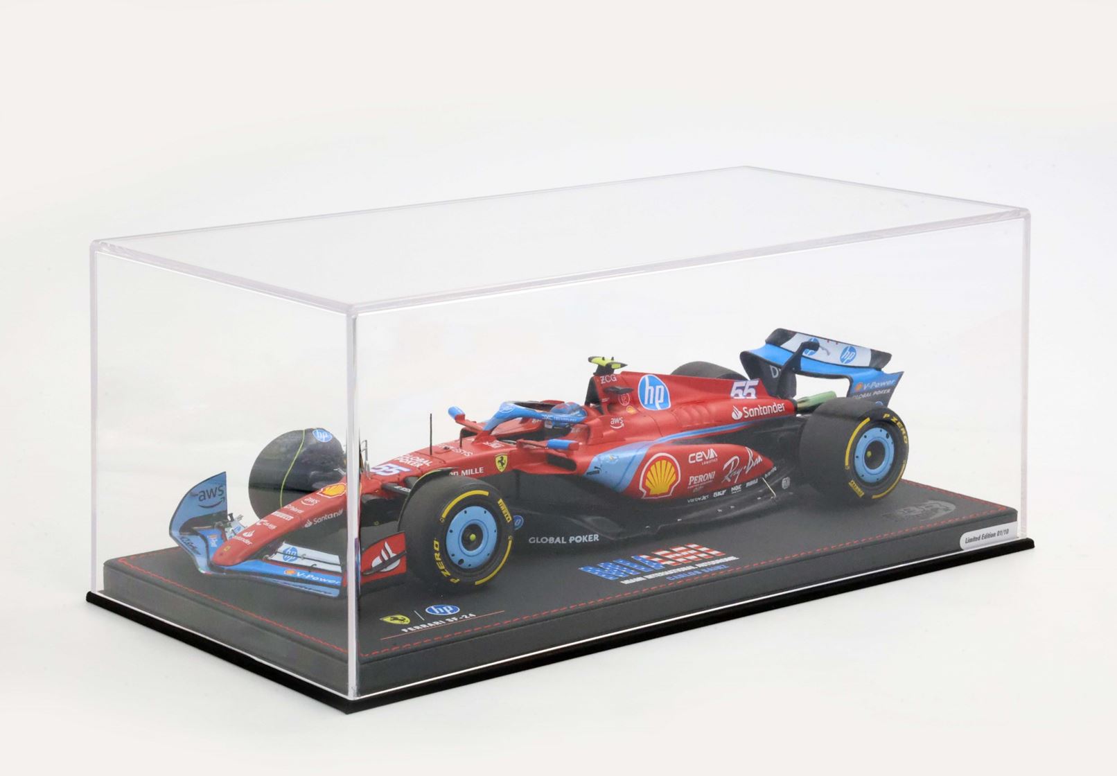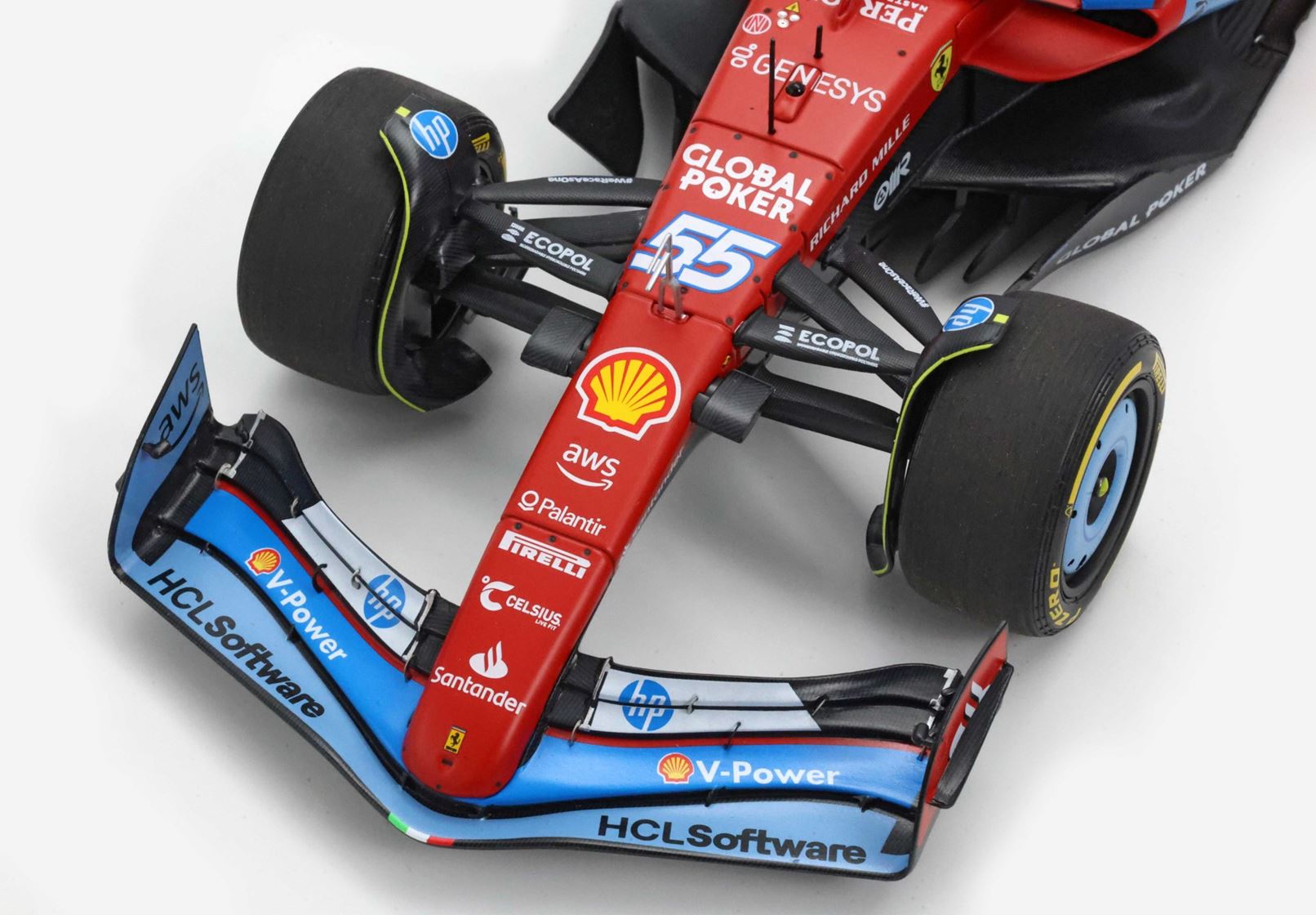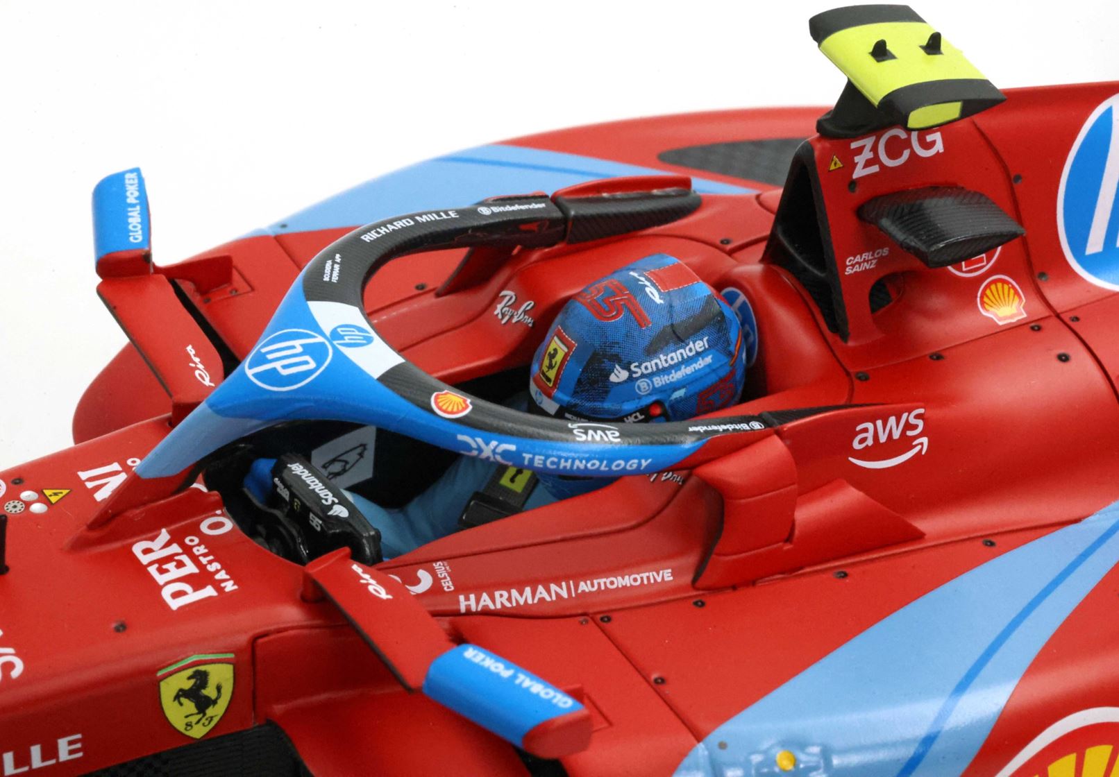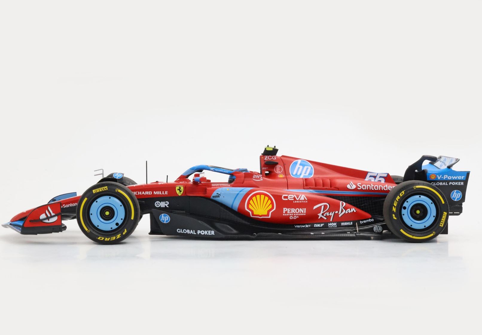 Una speciale livrea per riscoprire due colori, per anni parte della storia di Ferrari. Una livrea unica realizzata solo per il GP di Miami. La SF-24 si è tinta di due tonalità d'azzurro. L'Azzurro La Plata era il portafortuna di Alberto Ascari nelle sue stagioni più vincenti. L’Azzurro Dino, colore più scuro delle divise delle maestranze di Maranello, è stato usato per l'ultima volta anche sulla tuta di Regazzoni nel 1974.