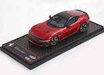 Le linee essenziali sono rese muscolari dai parafanghi. Quello posteriore prominente ma senza eccessi, è perfettamente integrato nella geometria dell'auto. Quello anteriore, con evidente richiamo alla 365GTB Daytona, mostra il suo fascino sinuoso impreziosendo la fiancata. Nel frontale, un'unica fascia avvolgente integra i fari e i DRL come due lame di luce. Proporzioni perfette per una GT: muso lunghissimo, abitacolo compatto e retro corto.