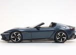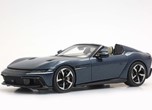 Le forme marcate delle due "pinne" posteriori costituiscono il carattere principale della Ferrari 12Cilindri Spider. Le linee essenziali sono rese muscolari dai parafanghi. Quello posteriore prominente ma senza eccessi, è perfettamente integrato nella geometria dell'auto. Quello anteriore, con evidente richiamo alla 365GTB Daytona, mostra il suo fascino sinuoso impreziosendo la fiancata. Nel frontale, un'unica fascia avvolgente integra i fari e i DRL come due lame di luce. Proporzioni perfette per una GT: muso lunghissimo, abitacolo compatto e retro corto.