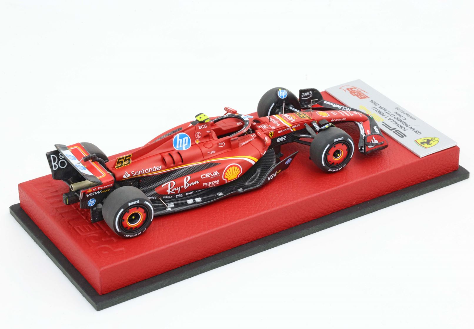 BBR ha realizzato un modellino con una speciale targhetta in carbonio, per richiamare il tema scelto da Ferrari per il gran premio d'Italia 2024.