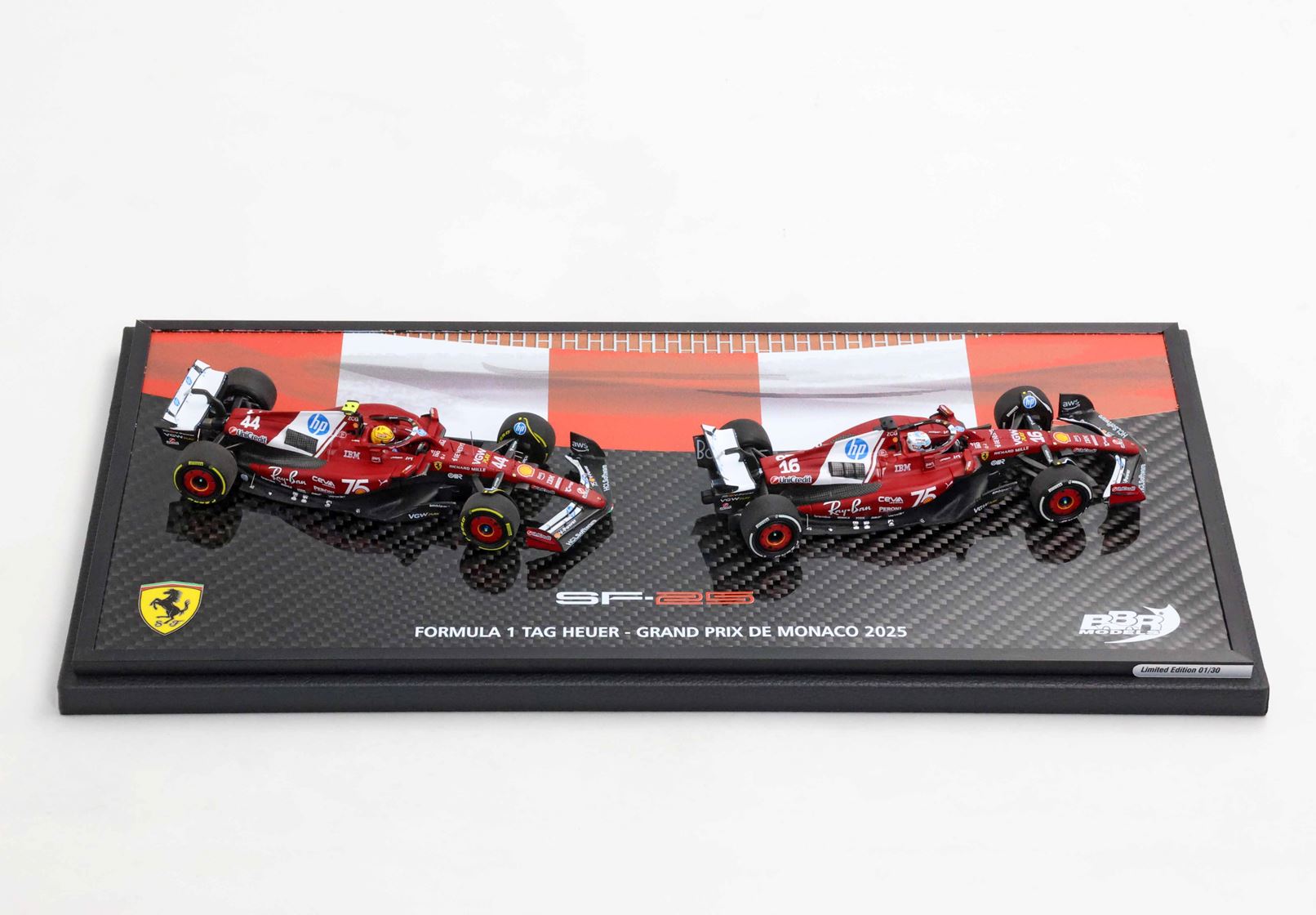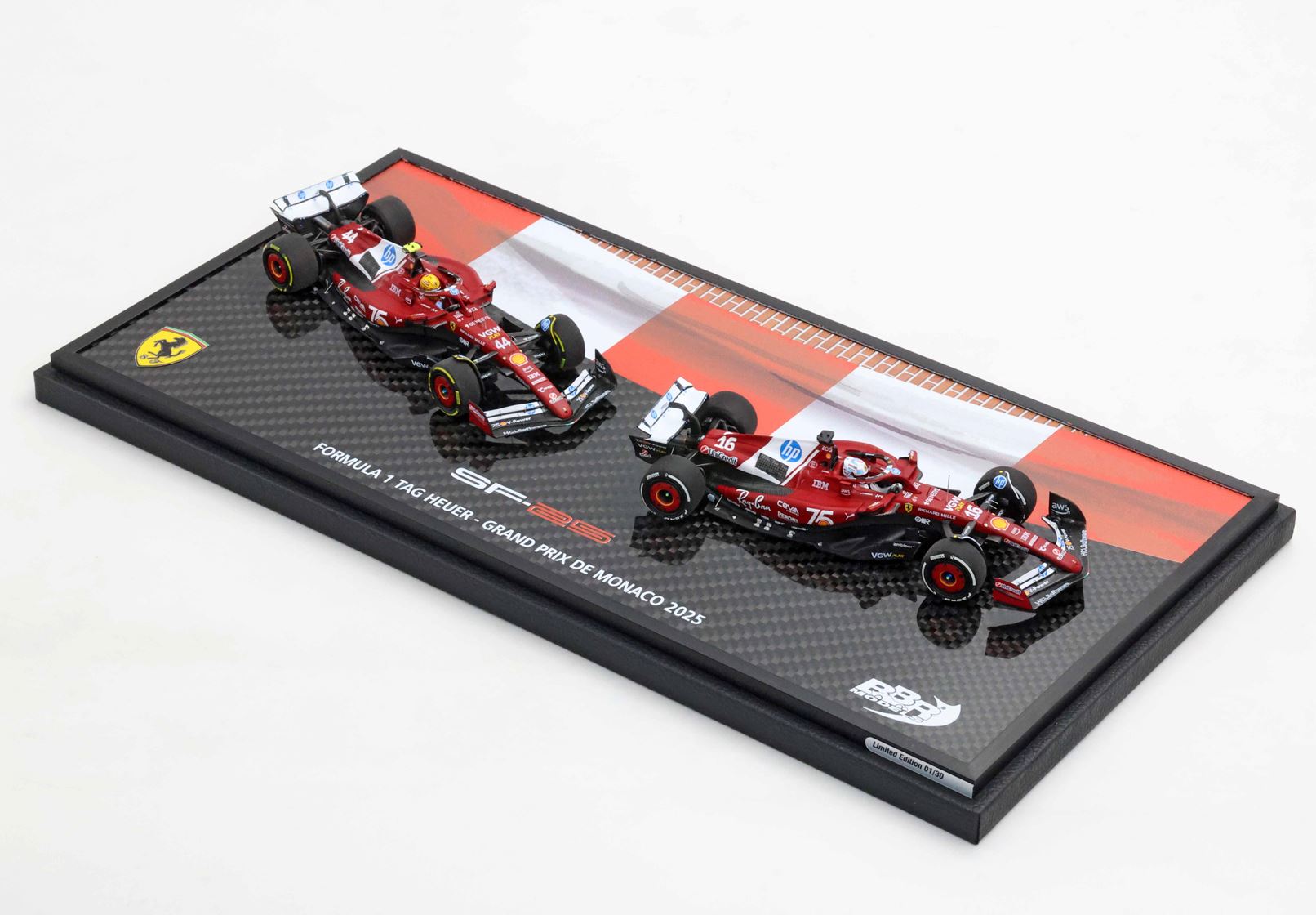 La monoposto SF-25 ha sfoggiato una grafica celebrativa dei 75 anni di partnership al Gran Premio di Monaco di questo fine settimana per commemorare l'evento.