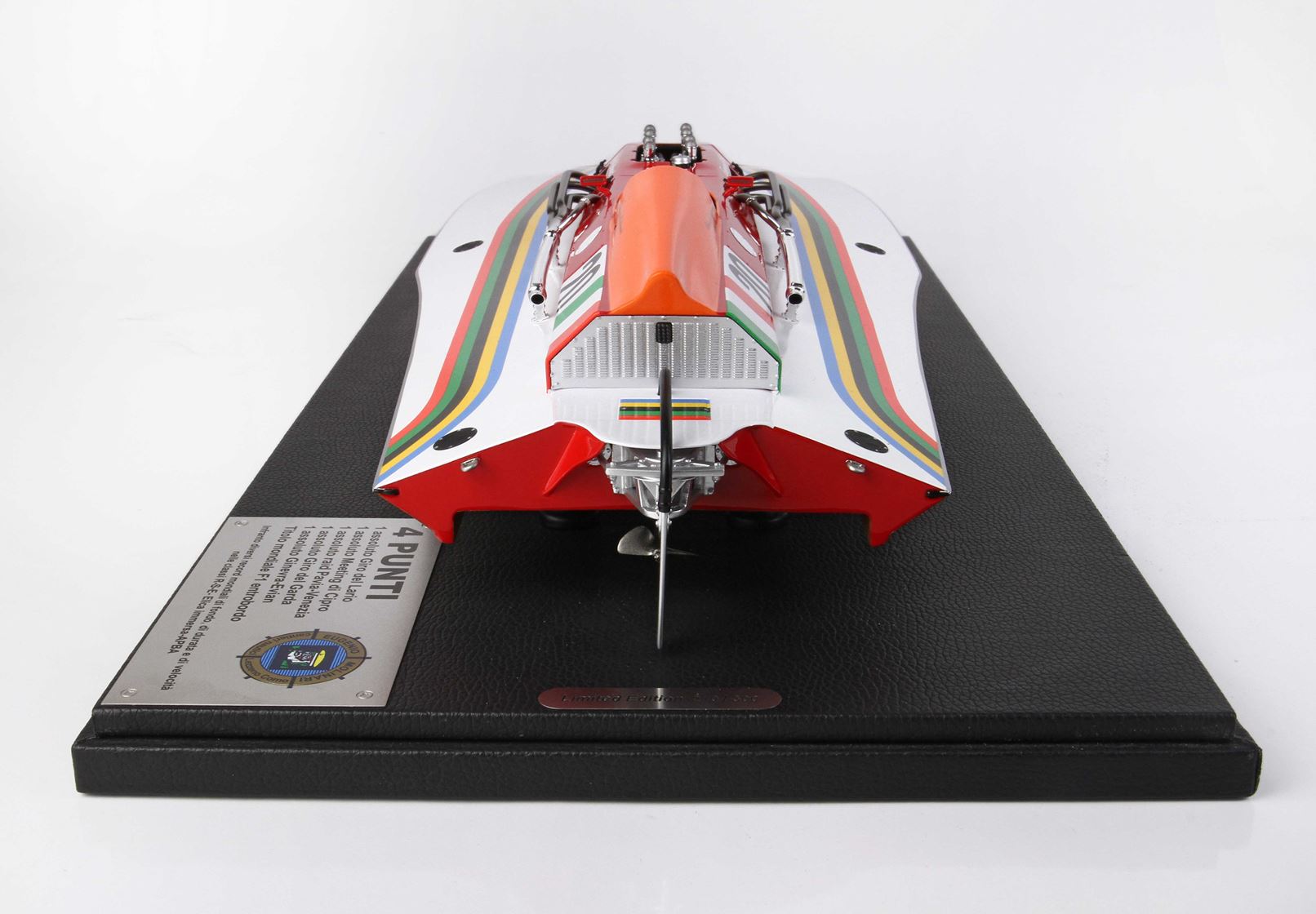 Base in ecopelle, targhetta in alluminio con record, vetrina in plexiglass fatta mano, scatola dedicata con logo ufficiale Cantieri Molinari