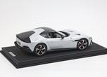Le linee essenziali sono rese muscolari dai parafanghi. Quello posteriore prominente ma senza eccessi, è perfettamente integrato nella geometria dell'auto. Quello anteriore, con evidente richiamo alla 365GTB Daytona, mostra il suo fascino sinuoso impreziosendo la fiancata. Nel frontale, un'unica fascia avvolgente integra i fari e i DRL come due lame di luce. Proporzioni perfette per una GT: muso lunghissimo, abitacolo compatto e retro corto.