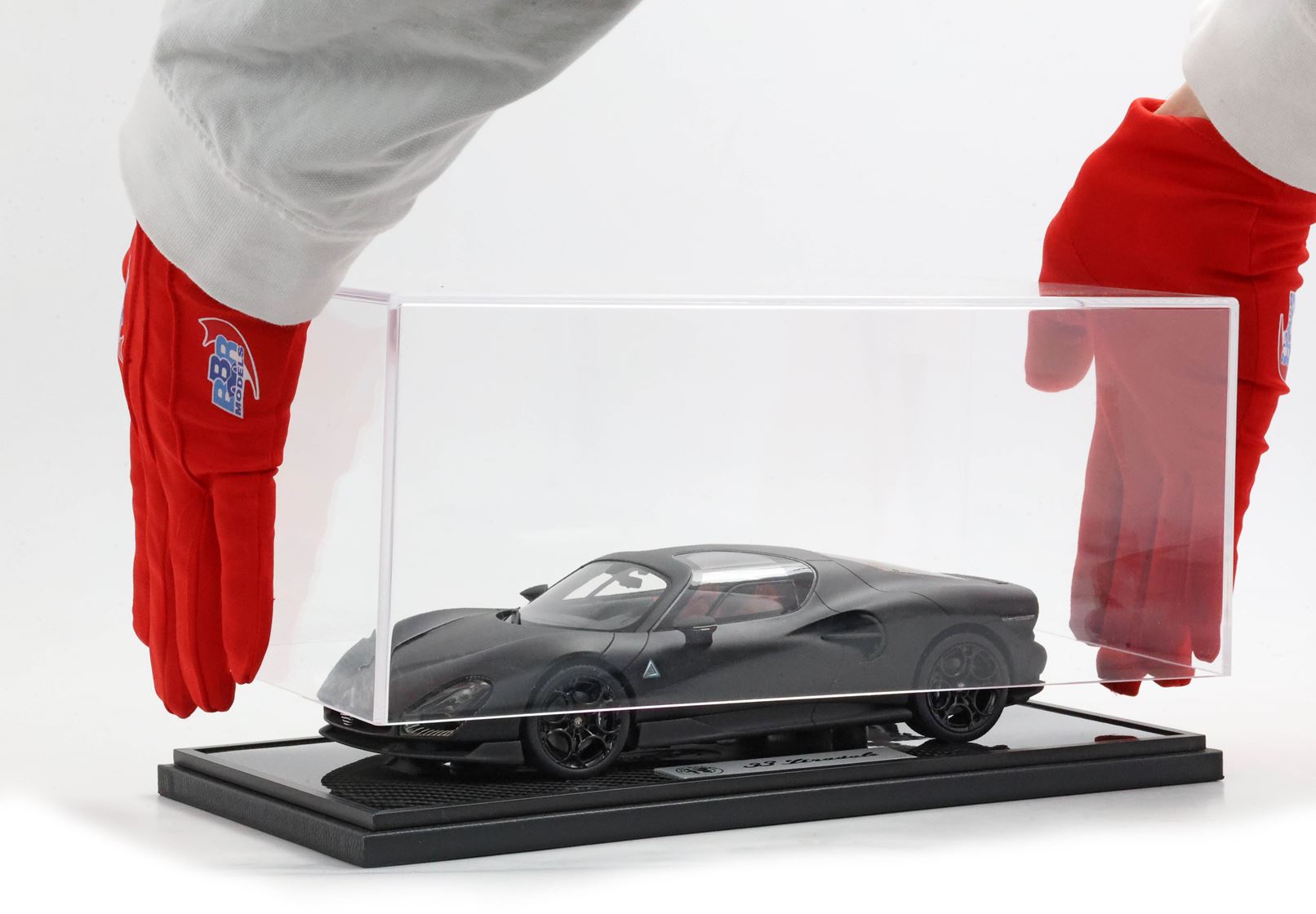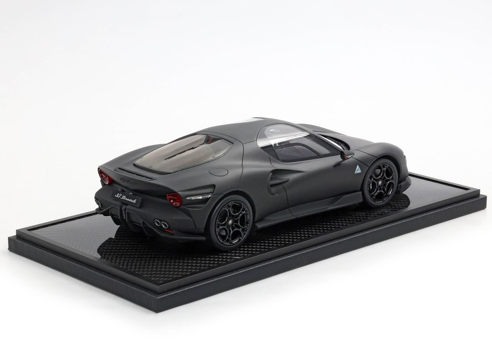 Questo modello rappresenta l'unione della esclusività di Alfa Romeo 33 Stradale la performance tecnica del carbonio. VERSIONE SPECIALE CON BASE IN CARBONIO E VETRINA INCLUSE.