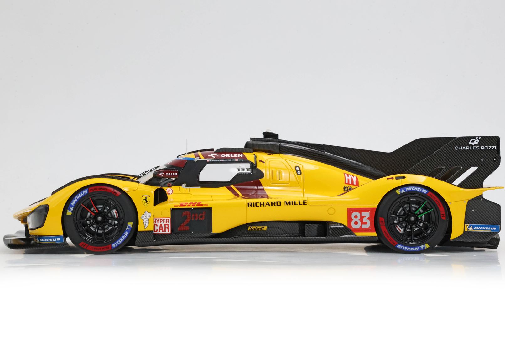La vettura numero 83, l'unica vettura gialla delle tre Ferrari in gara, guidata da Kubica, Ye, Hanson, ha tagliato il traguardo al secondo posto, in mezzo alle altre due 499P.