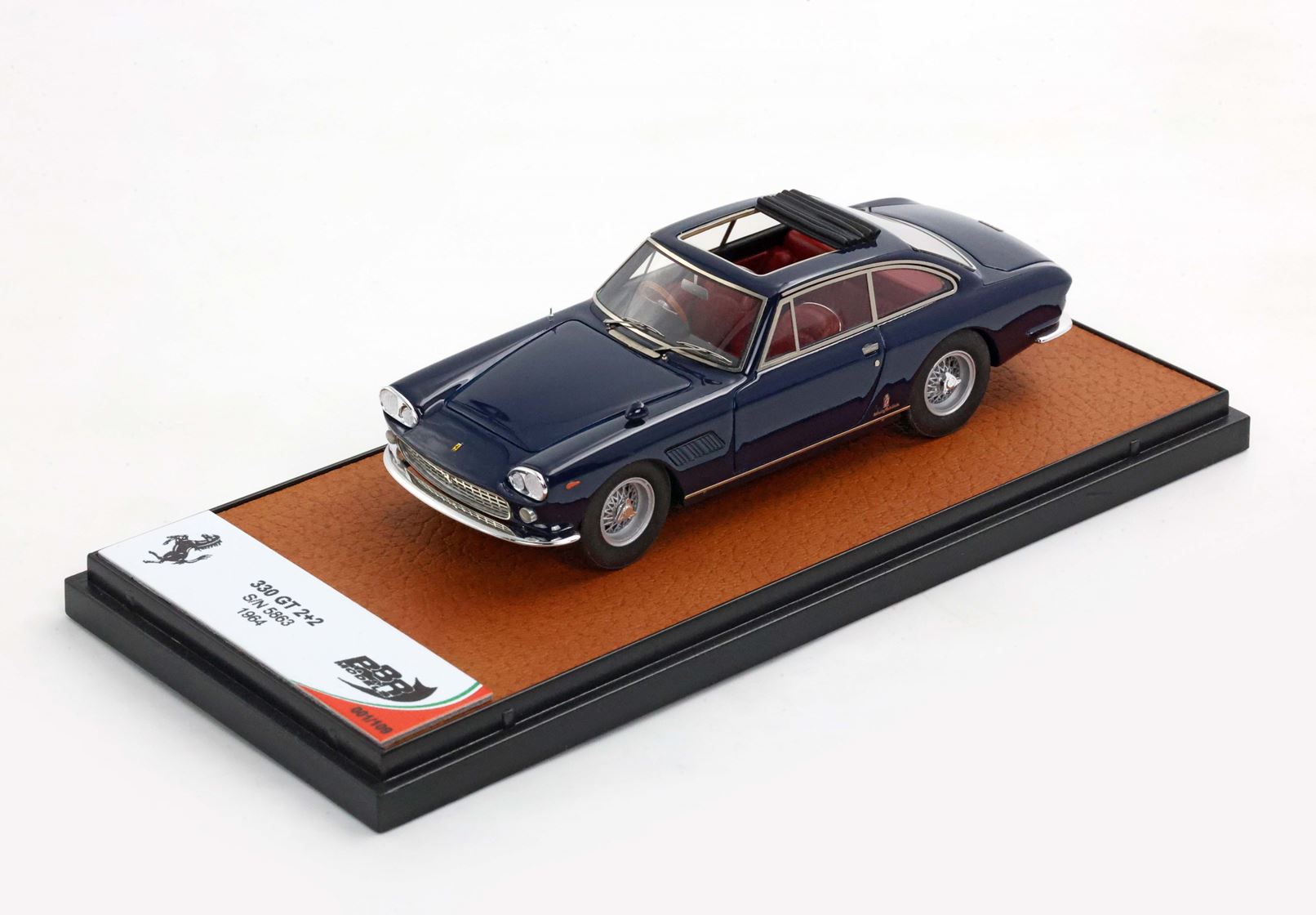 Il numero di serie 5863 blu scuro con interni rossi è stata consegnata all'importatore UK da Maranello nell'agosto 1964. Con guida a destra, questa auto era destinata esclusivamente al mercato UK. Il tettucci era reclinabile per una esperienza di guida all'aria aperta.