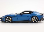 Le linee essenziali sono rese muscolari dai parafanghi. Quello posteriore prominente ma senza eccessi, è perfettamente integrato nella geometria dell'auto. Quello anteriore, con evidente richiamo alla 365GTB Daytona, mostra il suo fascino sinuoso impreziosendo la fiancata. Nel frontale, un'unica fascia avvolgente integra i fari e i DRL come due lame di luce. Proporzioni perfette per una GT: muso lunghissimo, abitacolo compatto e retro corto.