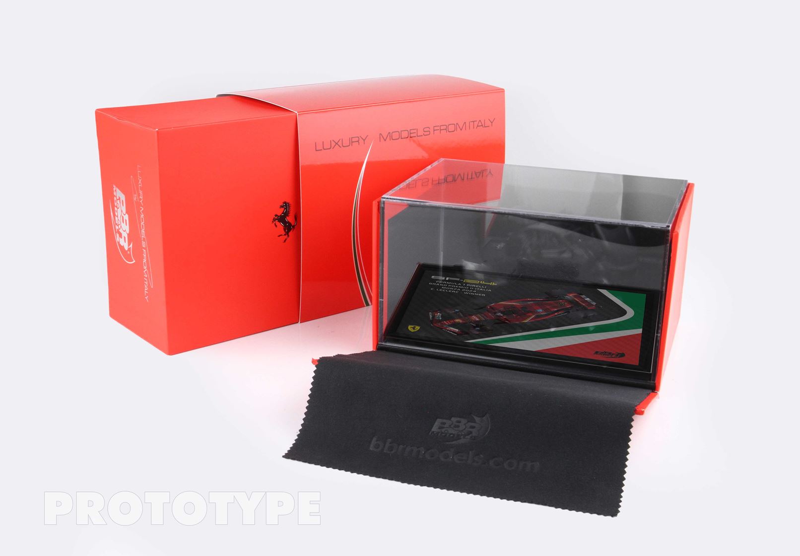 Per questa vittoria BBR ha realizzato una confezione davvero particolare. Base in vero carbonio opaco, disegno che richiama la pista e vetrina in puro plexiglass compresa nel prezzo.