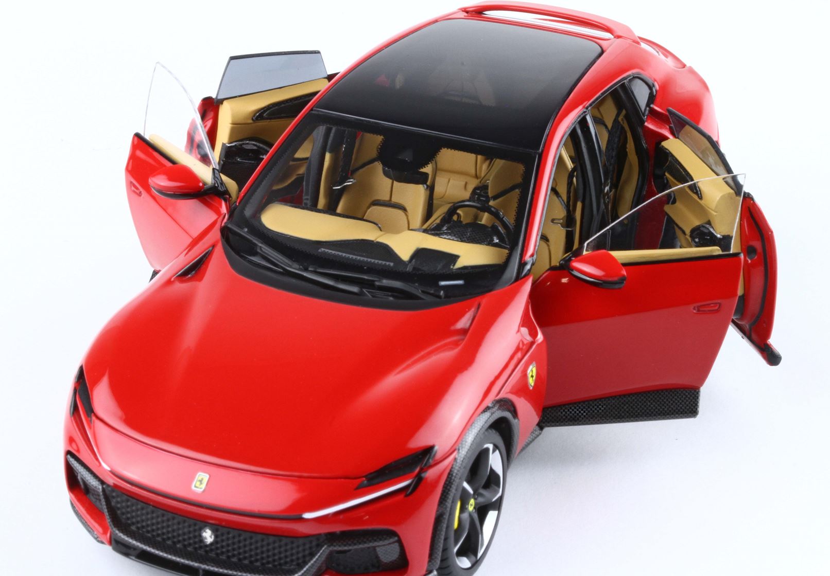 Esclusiva mondiale di Purosangue in scala 1/43 diecast completamente apribile. Rendono unico il modello firmato BBR, una fedele riproduzione dell’aperture di porte e cofani. Ben 105 parti compongono questo prodotto per un risultato di alta qualità. Versione con tetto panoramico trasparente.