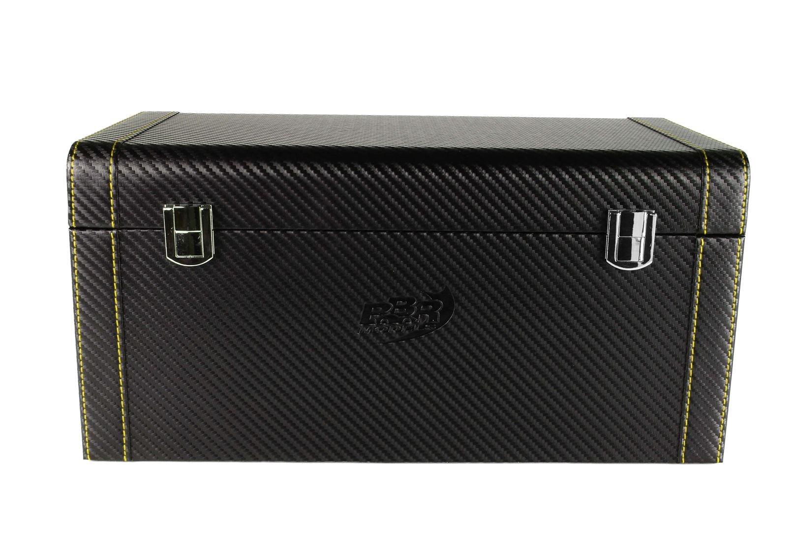 Automodello confezionato su una base di vero Carbonio, vetrina in puro plexiglass stampata a iniezione in italia inclusa e cofanetto esclusivo sviluppato dal reparto grafico BBR a Saronno Italy.