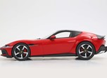 Le linee essenziali sono rese muscolari dai parafanghi. Quello posteriore prominente ma senza eccessi, è perfettamente integrato nella geometria dell'auto. Quello anteriore, con evidente richiamo alla 365GTB Daytona, mostra il suo fascino sinuoso impreziosendo la fiancata. Nel frontale, un'unica fascia avvolgente integra i fari e i DRL come due lame di luce. Proporzioni perfette per una GT: muso lunghissimo, abitacolo compatto e retro corto.