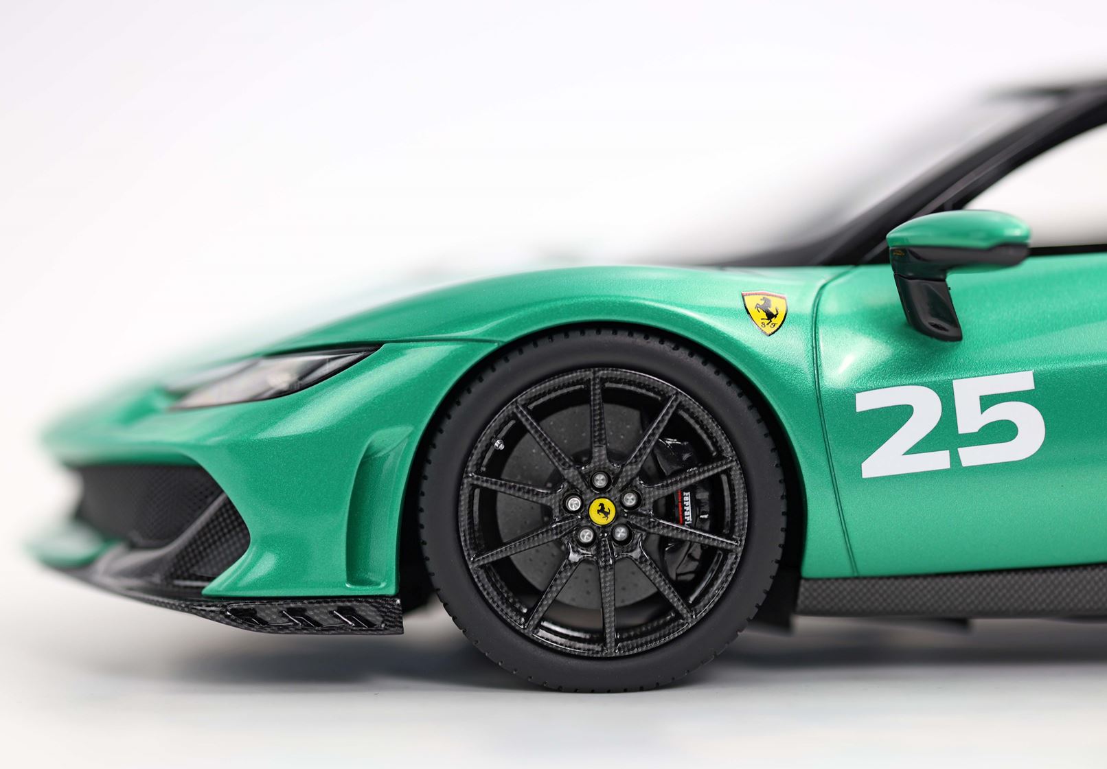 La Ferrari 296 Speciale rappresenta l'evoluzione di 296 GTB. Presentata nell'aprile del 2025 - in contemporanea con la versione A, cioè Aperta, dotata di tetto rigido retrattile - questa berlinetta ibrida plug-in propone una riduzione di peso significativa e un incremento della potenza complessiva. Il design è immediatamente riconoscibile rispetto alla versione GTB grazie ad appendici aerodinamiche derivate dalla 296 Challenge, come l'aero damper anteriore, che convoglia l'aria dal fondo al cofano per stabilizzare l'avantreno. Al posteriore spiccano invece le side wings che riducono la resistenza e aumentano il carico verticale con un incremento del 20% rispetto alla 296 GTB. La motorizzazione rimane un V6 biturbo abbinato a un motore elettrico MGU-K, ma la potenza complessiva sale a 880 CV, con un aumento di 50 CV rispetto alla 296 GTB.