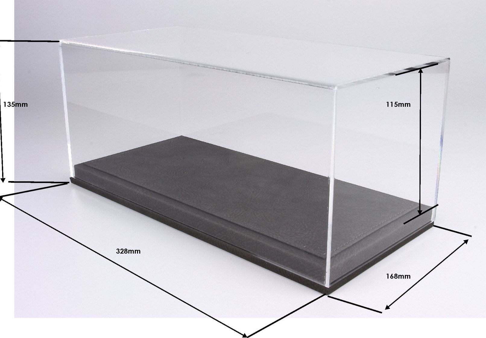 Vetrine in plexiglass disponibili per i modelli in scala 1/18, vendute su varie basi riproducenti vari tipi di asfalti o situazioni gare.