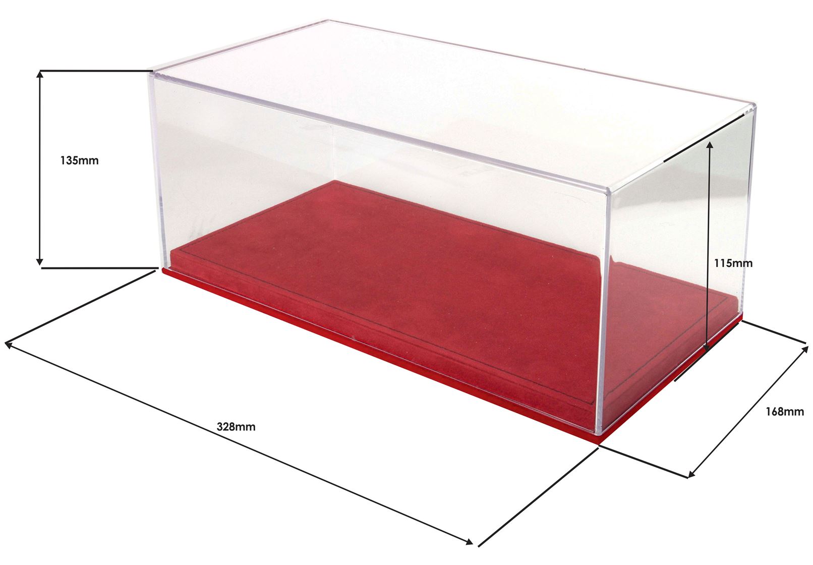 Vetrine in plexiglass disponibili per i modelli in scala 1/18, vendute su varie basi riproducenti vari tipi di asfalti o situazioni gare.