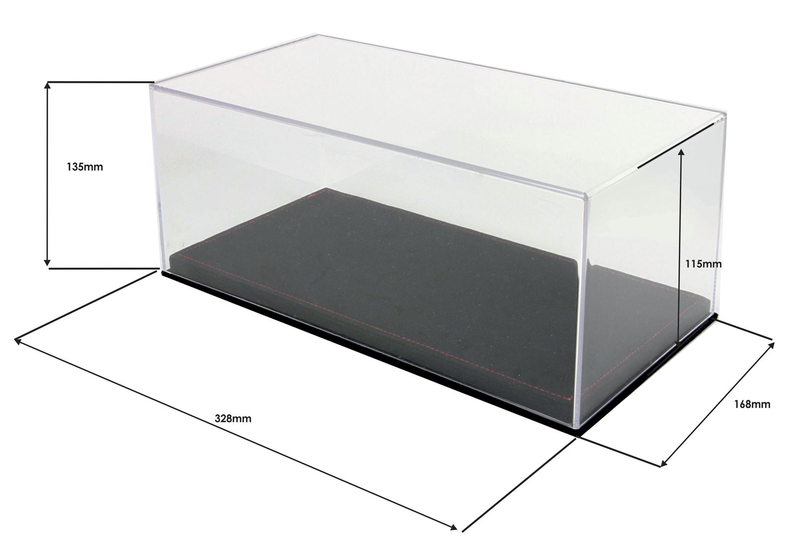 Vetrine in plexiglass disponibili per i modelli in scala 1/18, vendute su varie basi riproducenti vari tipi di asfalti o situazioni gare.