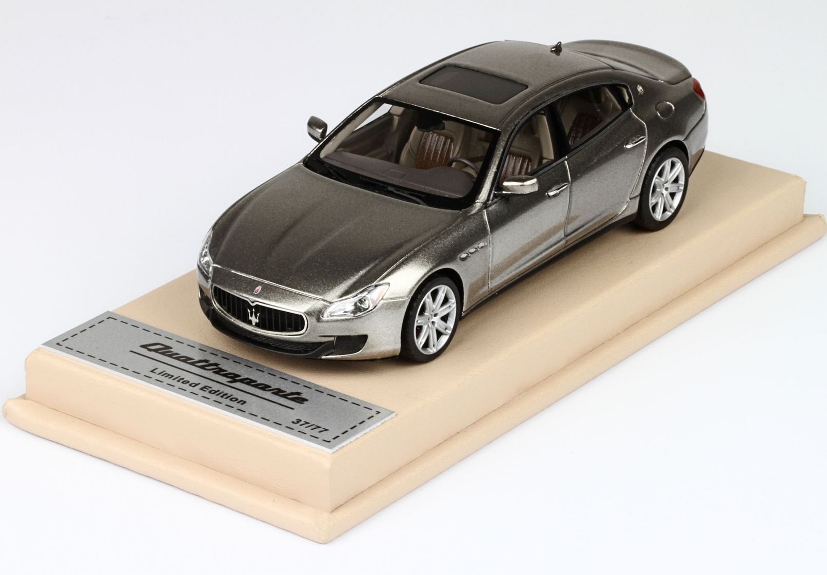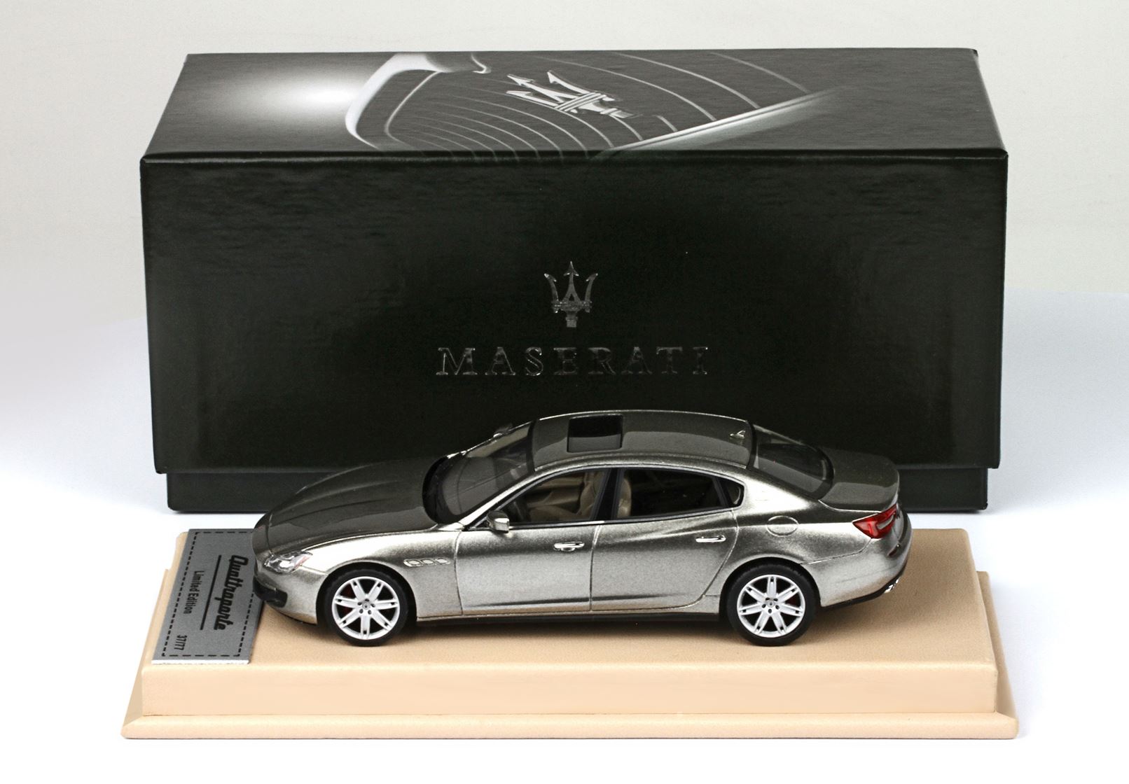 Questo modello speciale è stato confezionato su basetta di pelle e scatola Maserati.