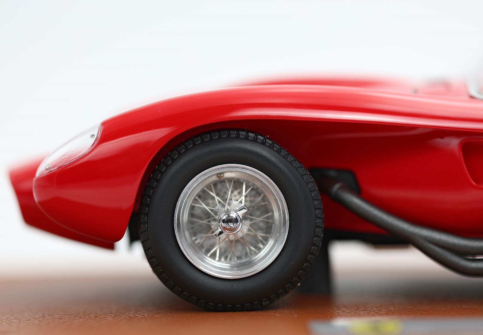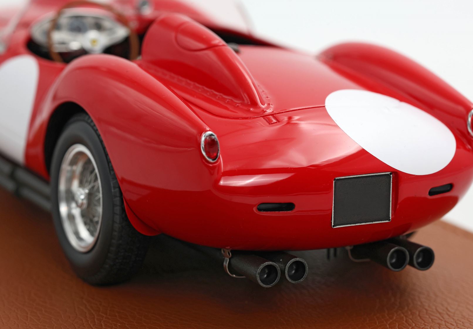 Il volante è l'assemblaggio di 5 componenti e replica quello reale ma in scala 1/18. Sono stati riprodotti i sostegni dei tubi di scappamento in vero acciaio.