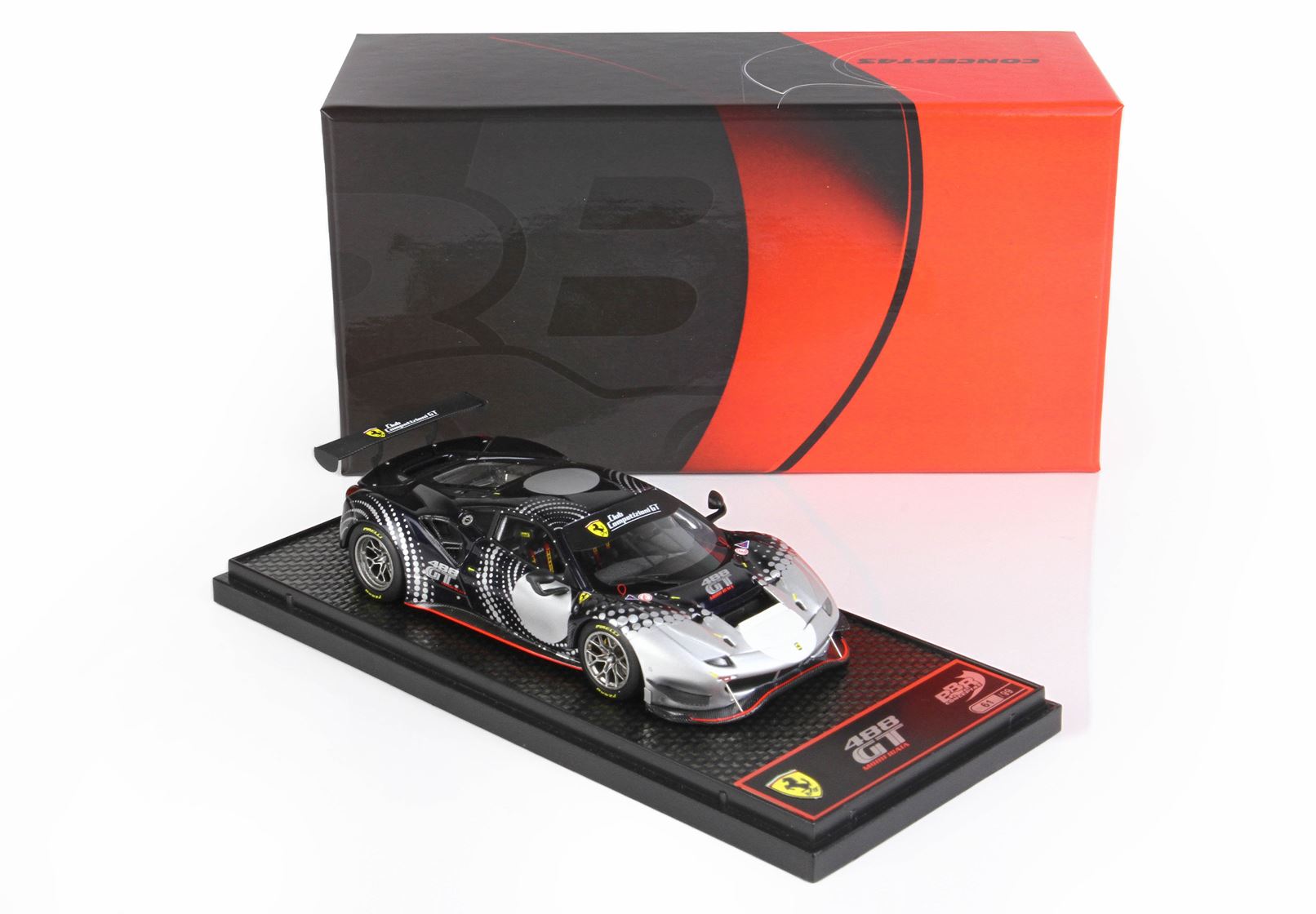 Concept43, la qualità e l'innovazione BBR alla sua massima espressione. Modelli interamente studiati nei laboratori italiani ma assemblati in Cina. Le parti aerodinamiche sono realizzate con utilizzo di particolari in acciaio che permettendo la riduzione perfetta in scala 1/43 con spessori mai visti. Verniciatura e assemblaggio garantito da un BRAND che da più di 25 anni è sinonimo di qualità e perfezione.