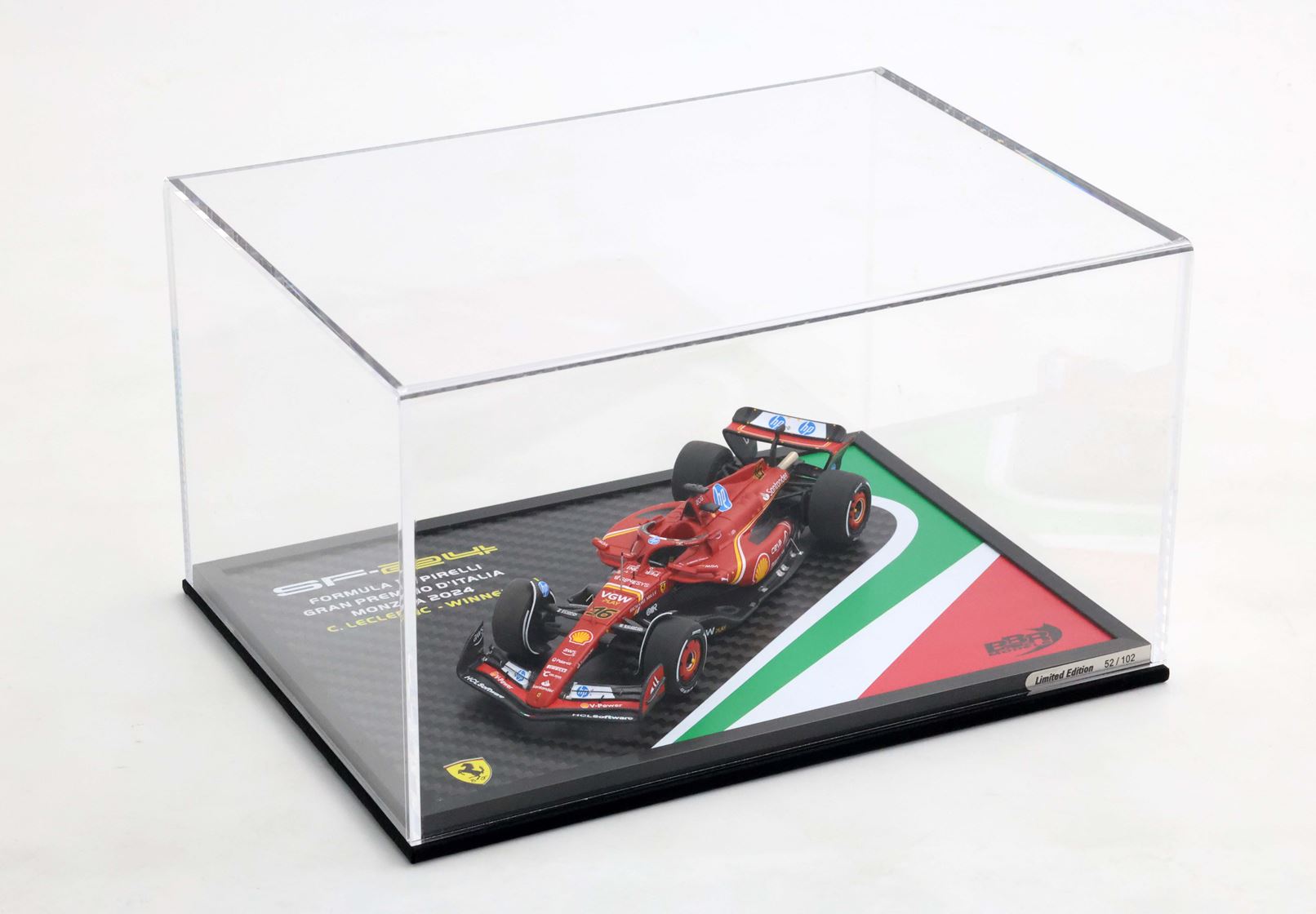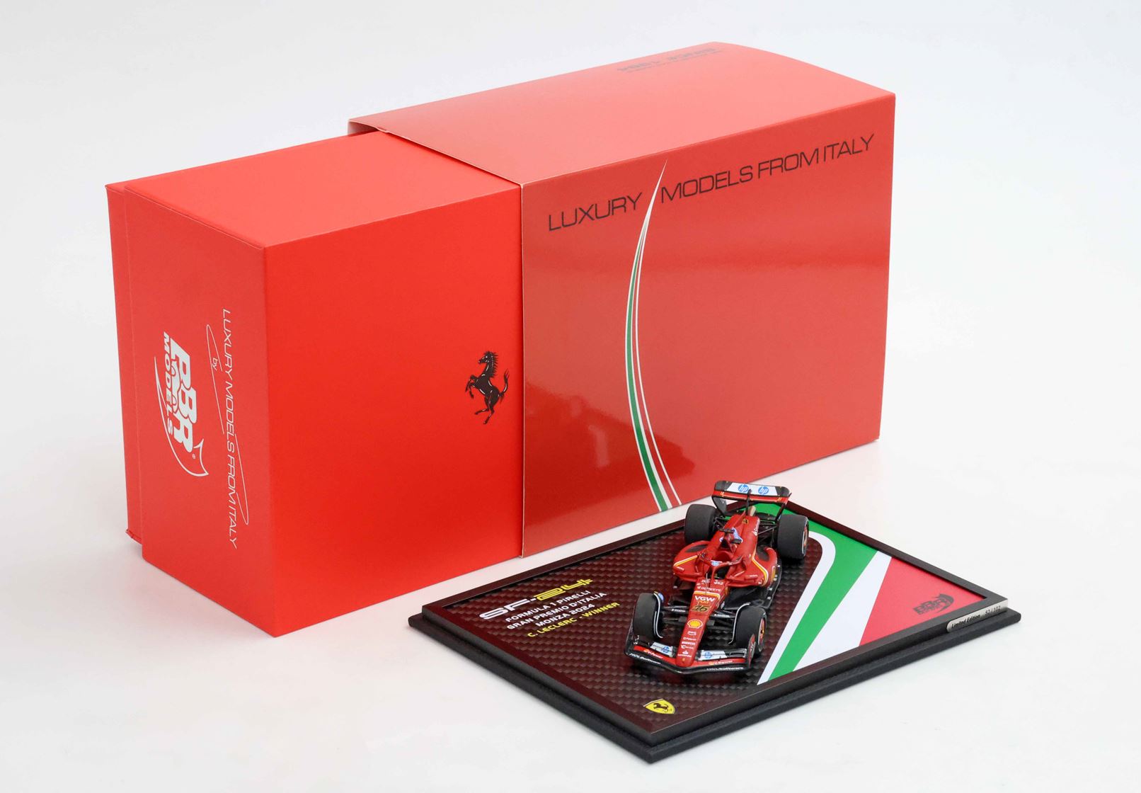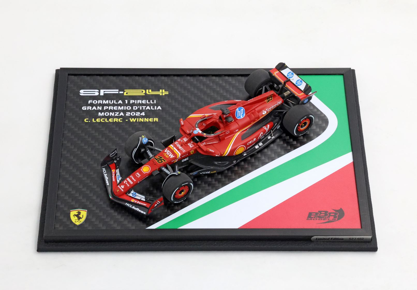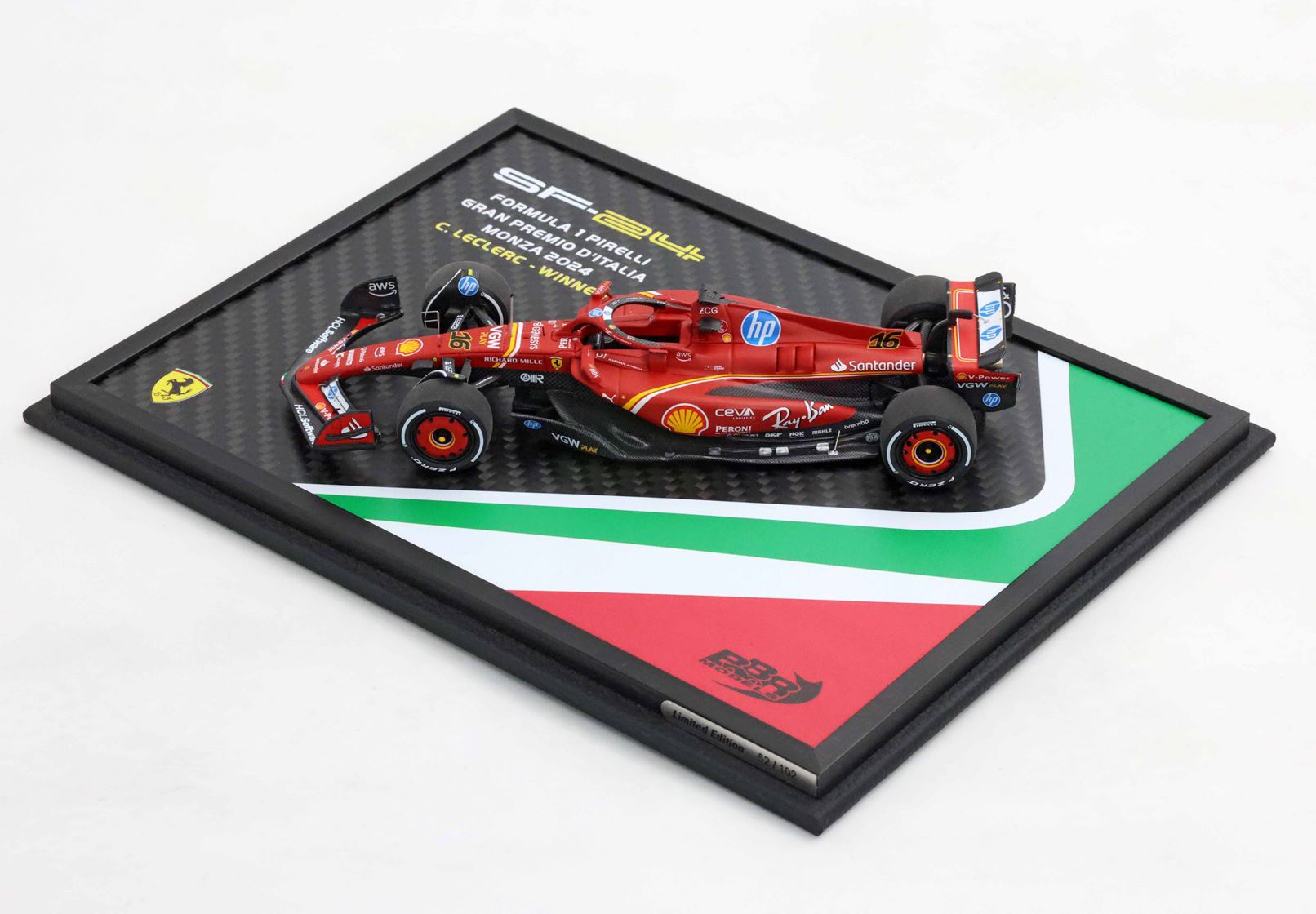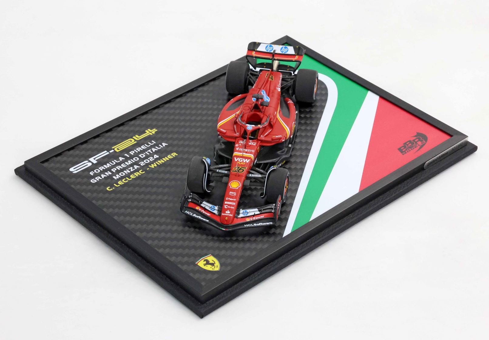 Per questa vittoria BBR ha realizzato una confezione davvero particolare. Base in vero carbonio opaco, disegno che richiama la pista e vetrina in puro plexiglass compresa nel prezzo.