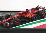 Ma il Nero è il colore scelto dal Cavallino Rampante per il Gran Premio di Monza 2024. Una texture in fibra di carbonio nera, che ricorda il materiale iconico delle auto da corsa, è il colore principale delle tute e dei caschi dei piloti Ferrari. Per questa occasione, la livrea della SF24 ha il numero nero bordato in Giallo Modena.