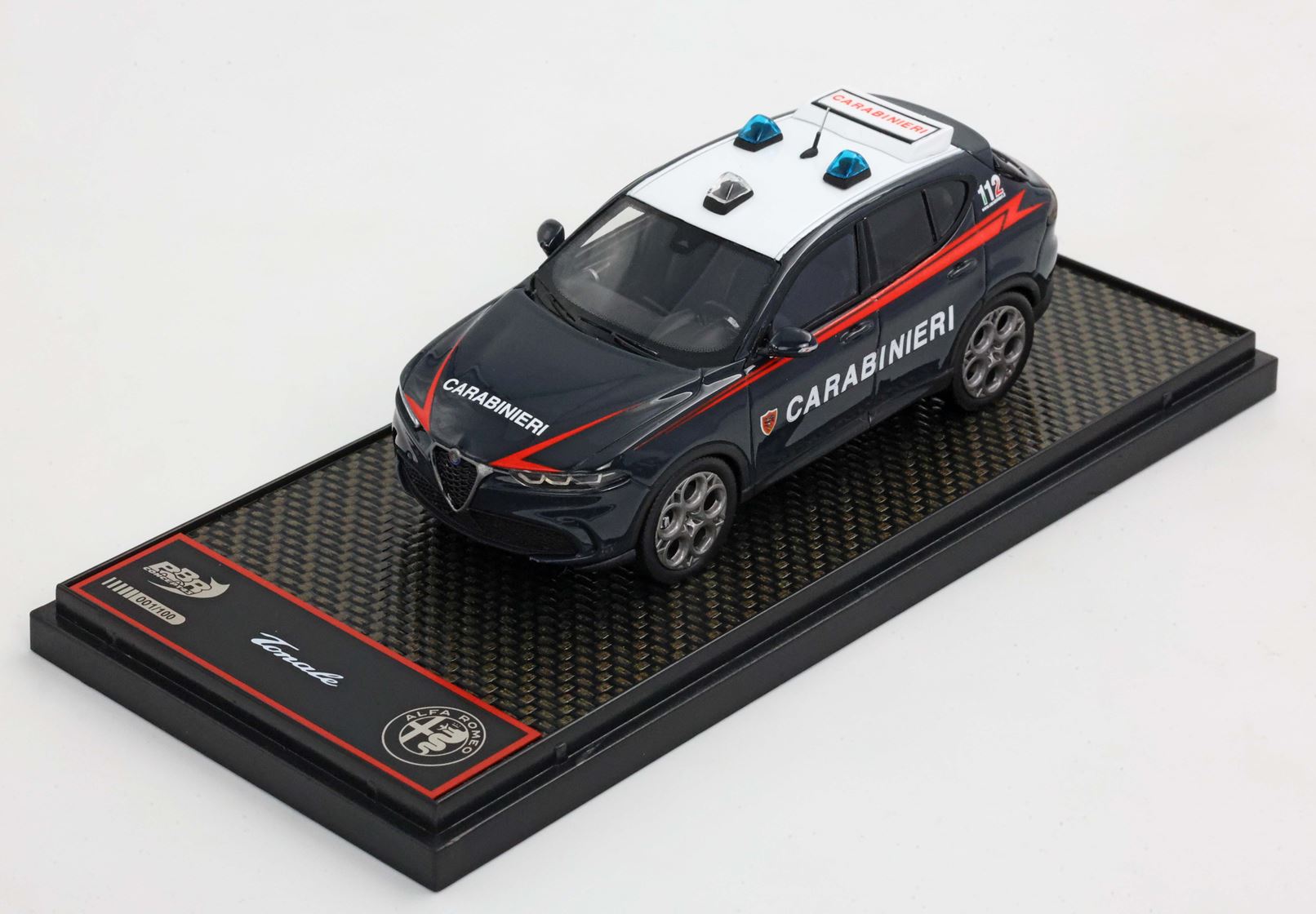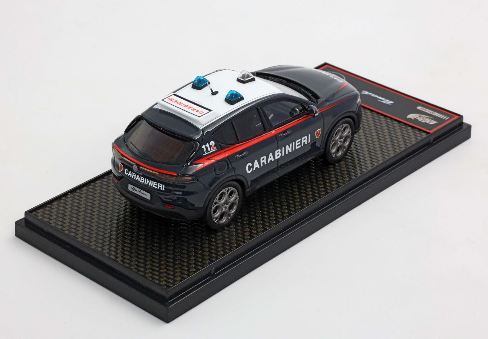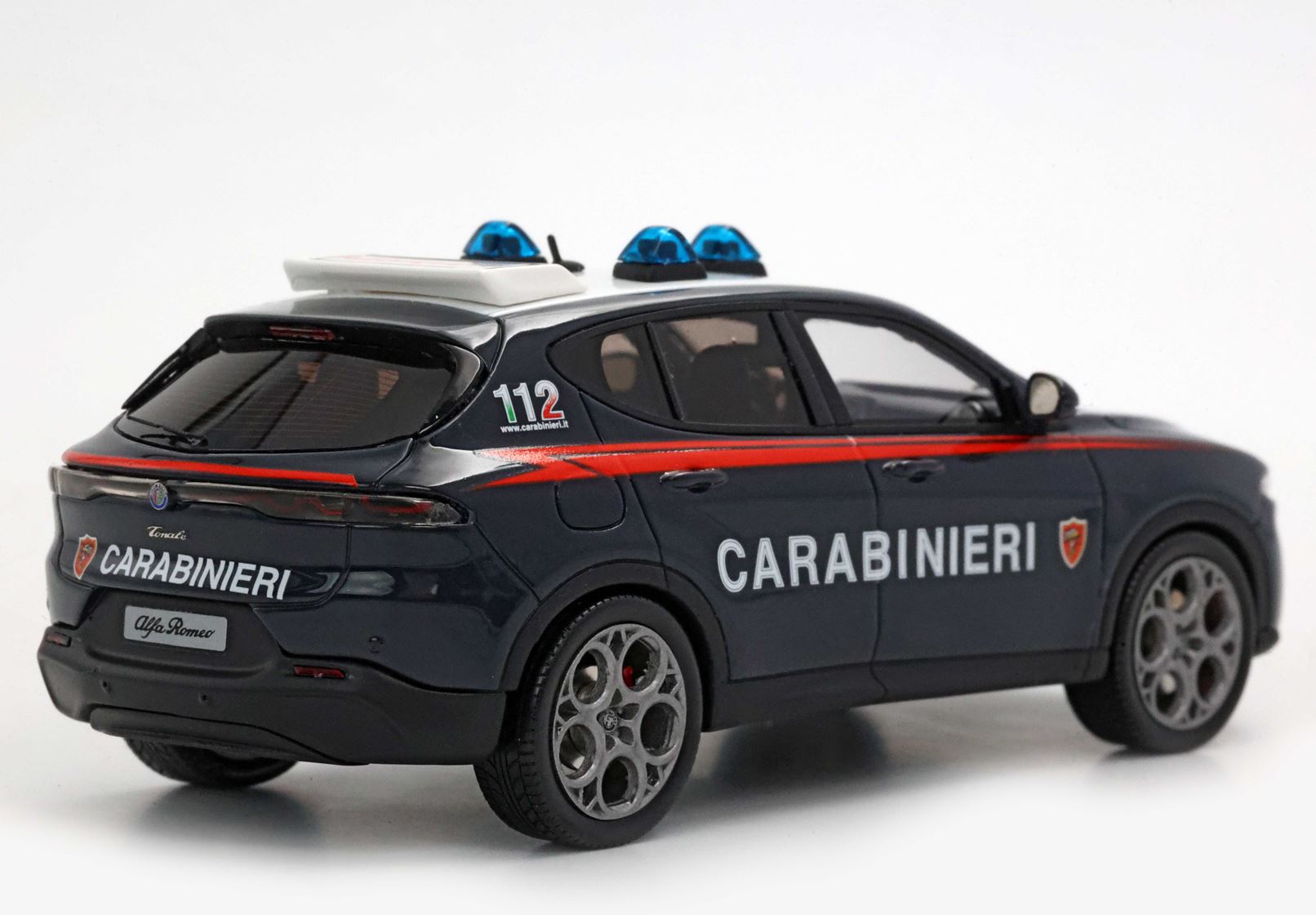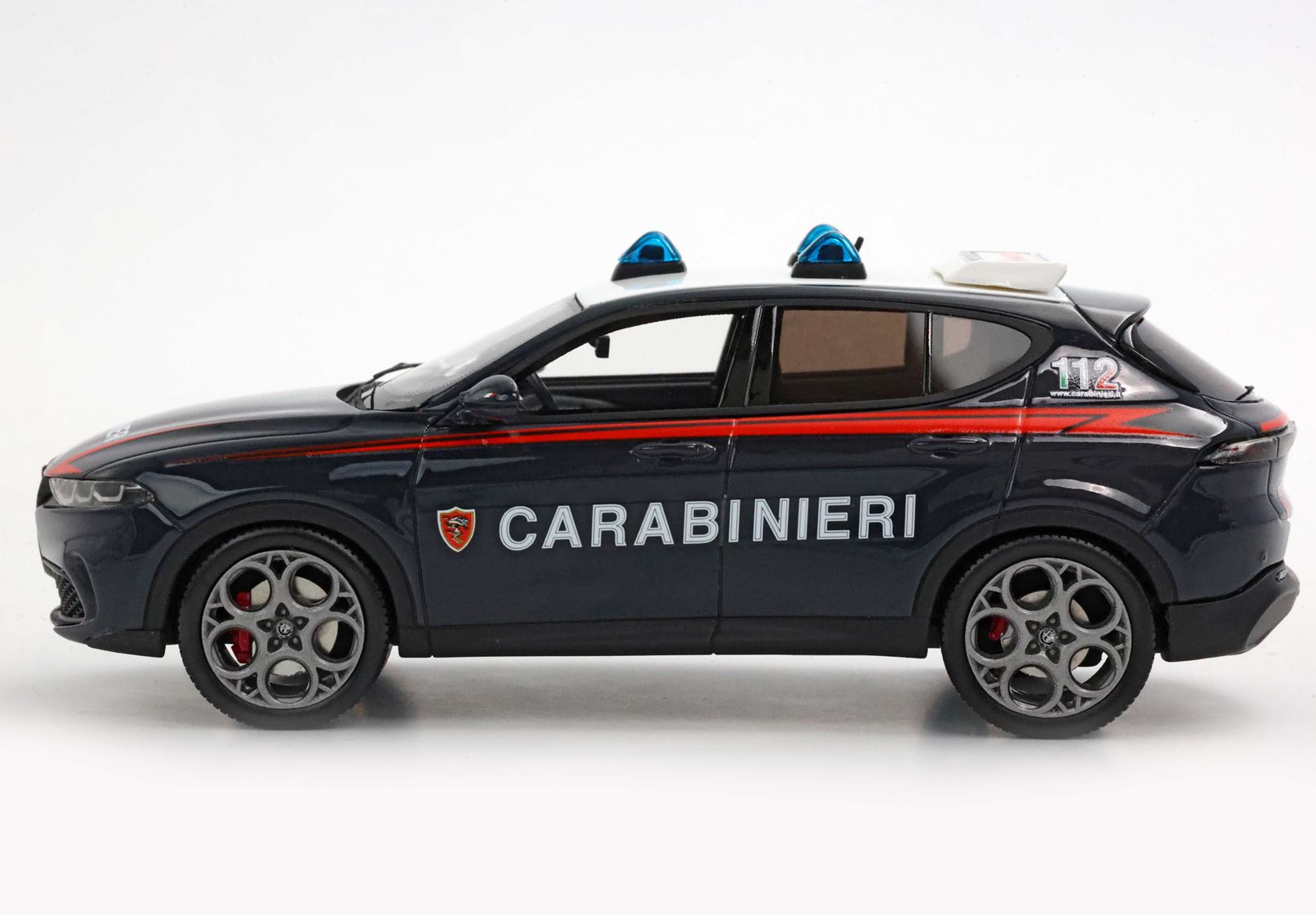 Sul modello BBR, luci e sirene* del tetto replicano esattamente l'auto speciale in dotazione ai Carabinieri.