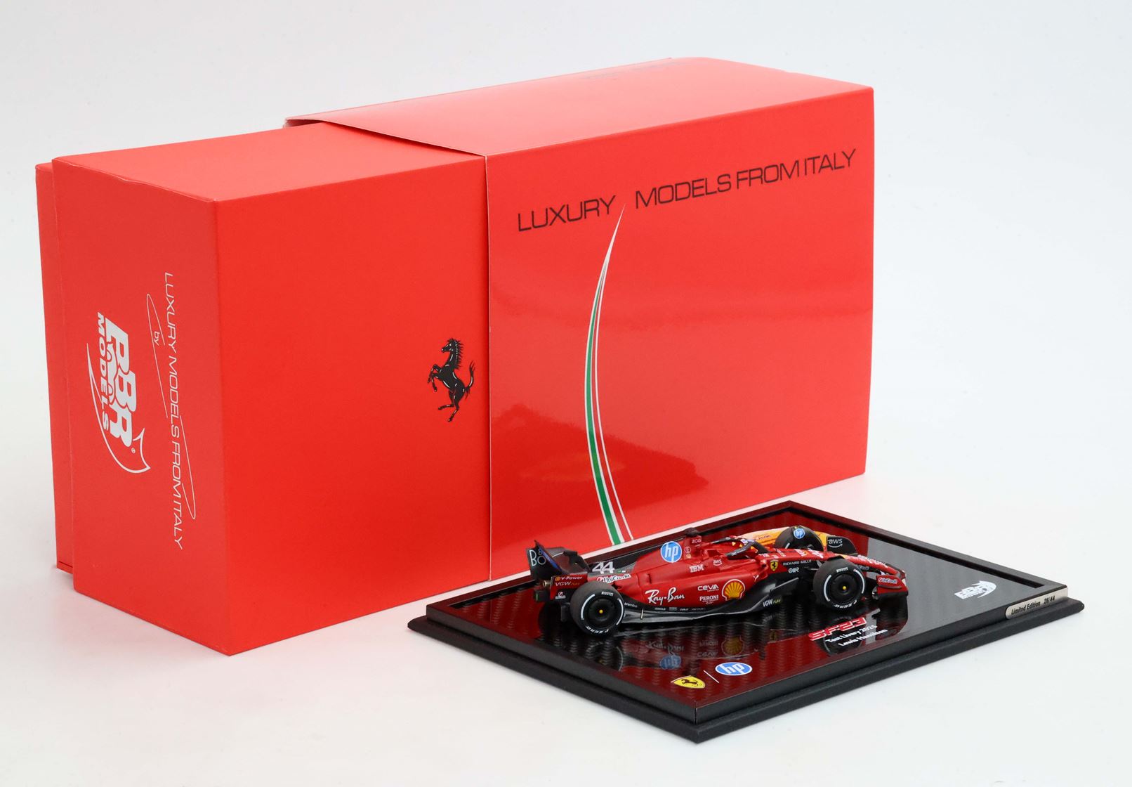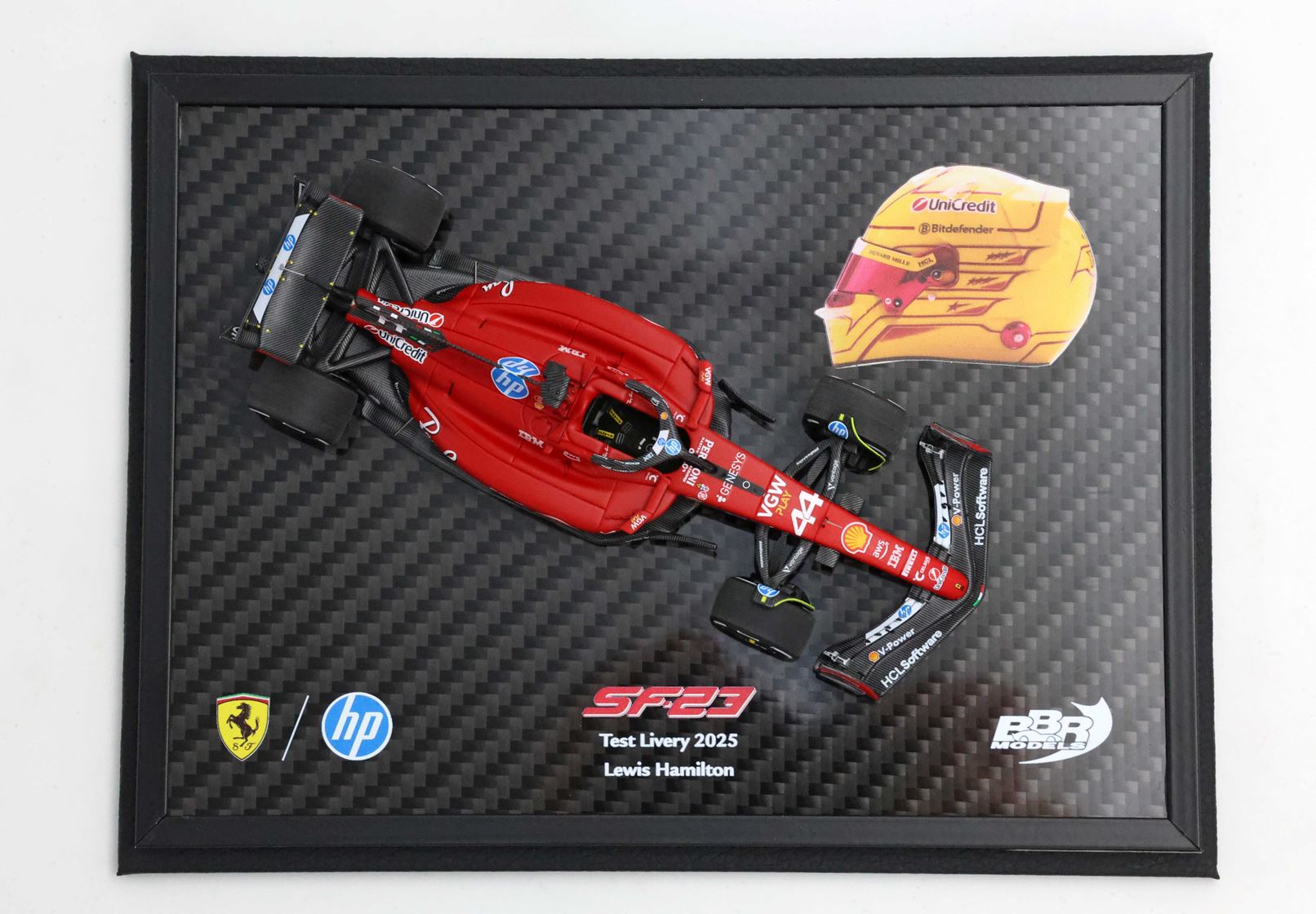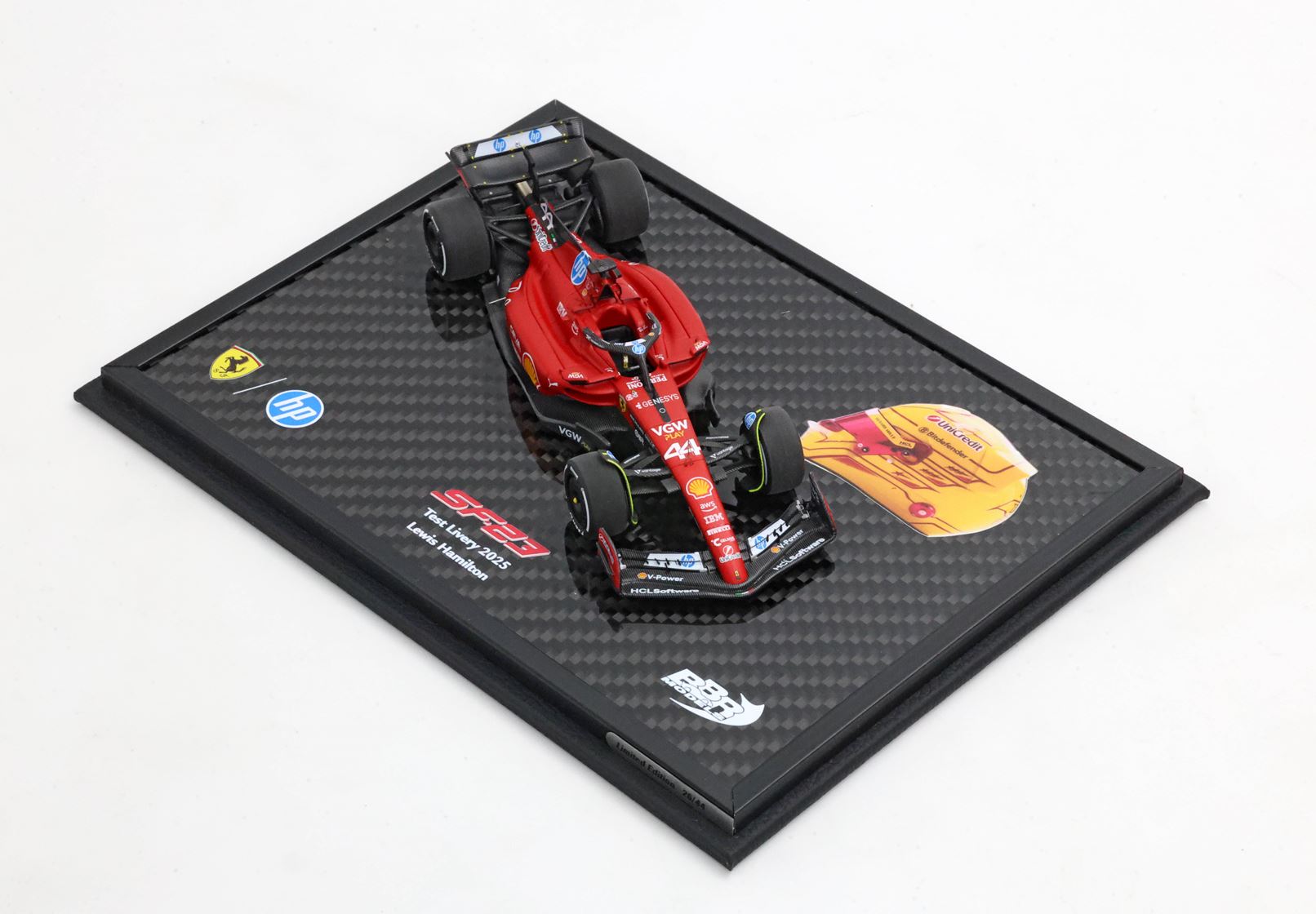 Per celebrare questa giornata storica, BBR propone un modellino in scala 1/43 della SF-23 aggiornata con il numero di gara di Hamilton e tutti gli sponsor della stagione 2025.