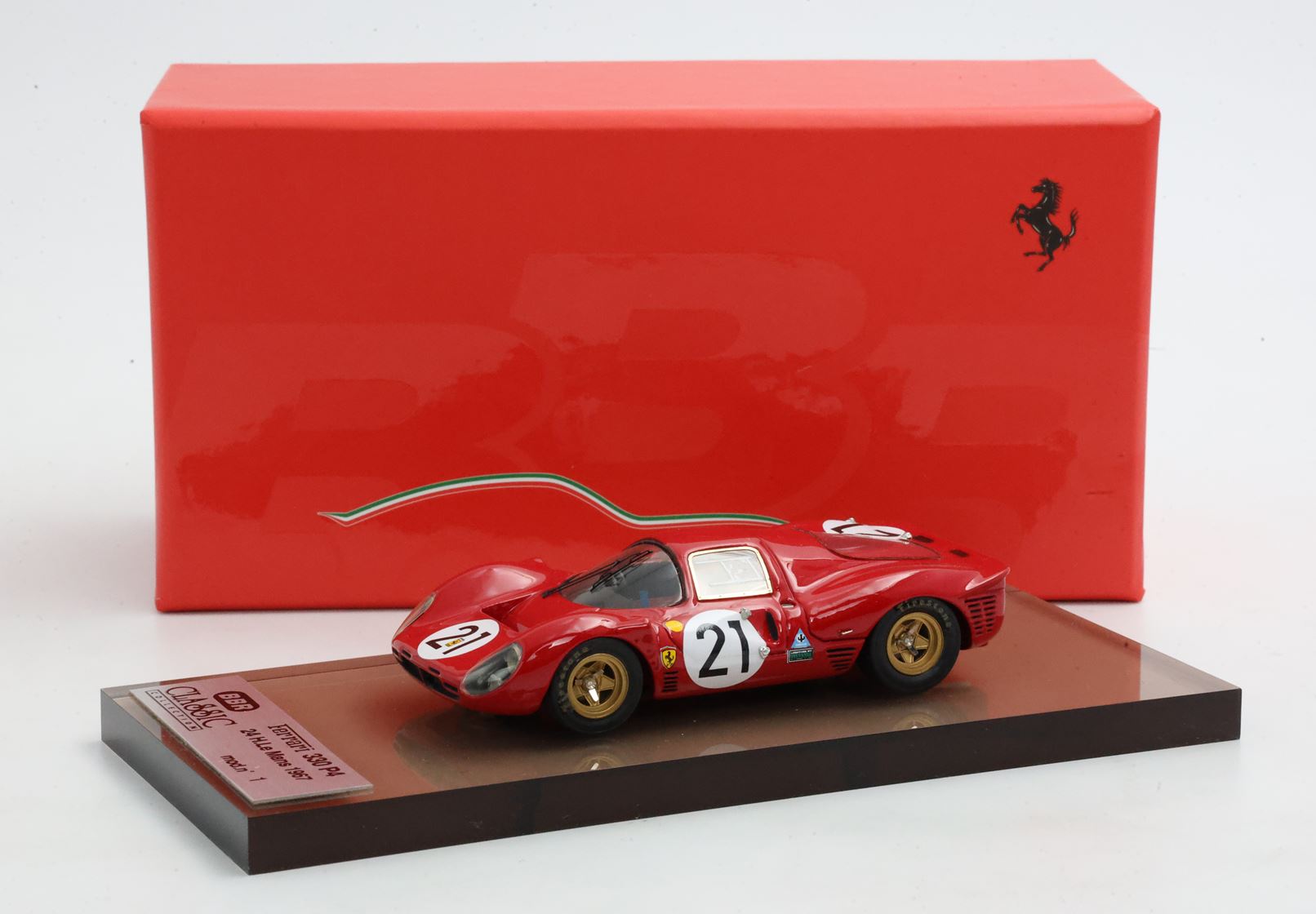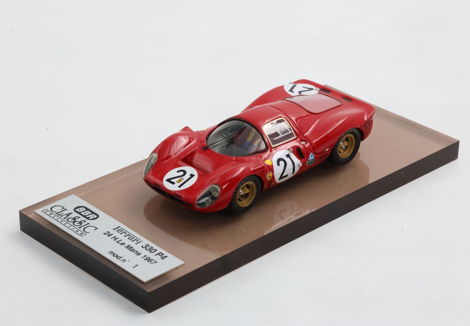 La Ferrari 330 P4 con il numero 21, iscritta da Sefac Ferrari alla 24 Ore di Le Mans del 1967, è ampiamente considerata una delle auto da corsa più belle e iconiche mai costruite. Guidata dalla formidabile coppia formata da Ludovico Scarfiotti e Mike Parkes, la Ferrari non riuscì a colmare il distacco dalla Ford in testa. La gara si concluse con uno storico secondo posto assoluto per la vettura numero 21, che completò 384 giri e si trovò a soli quattro giri dal vincitore, precedendo un'altra 330 P4 che tagliò il traguardo, assicurando così una amara doppietta (2-3) per Maranello.