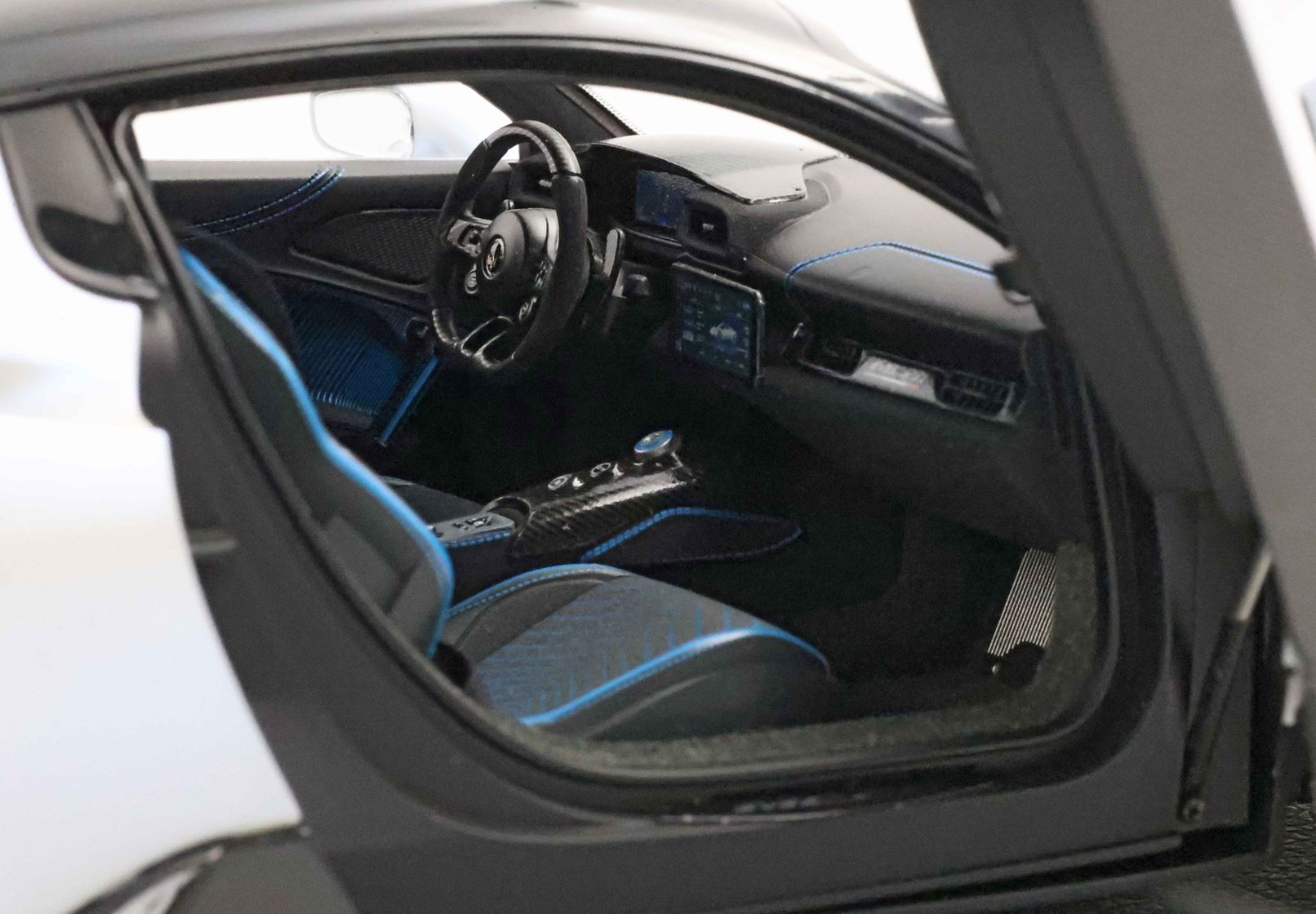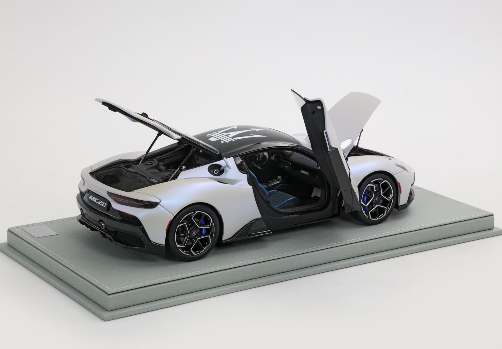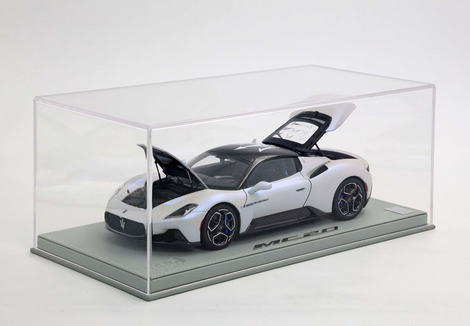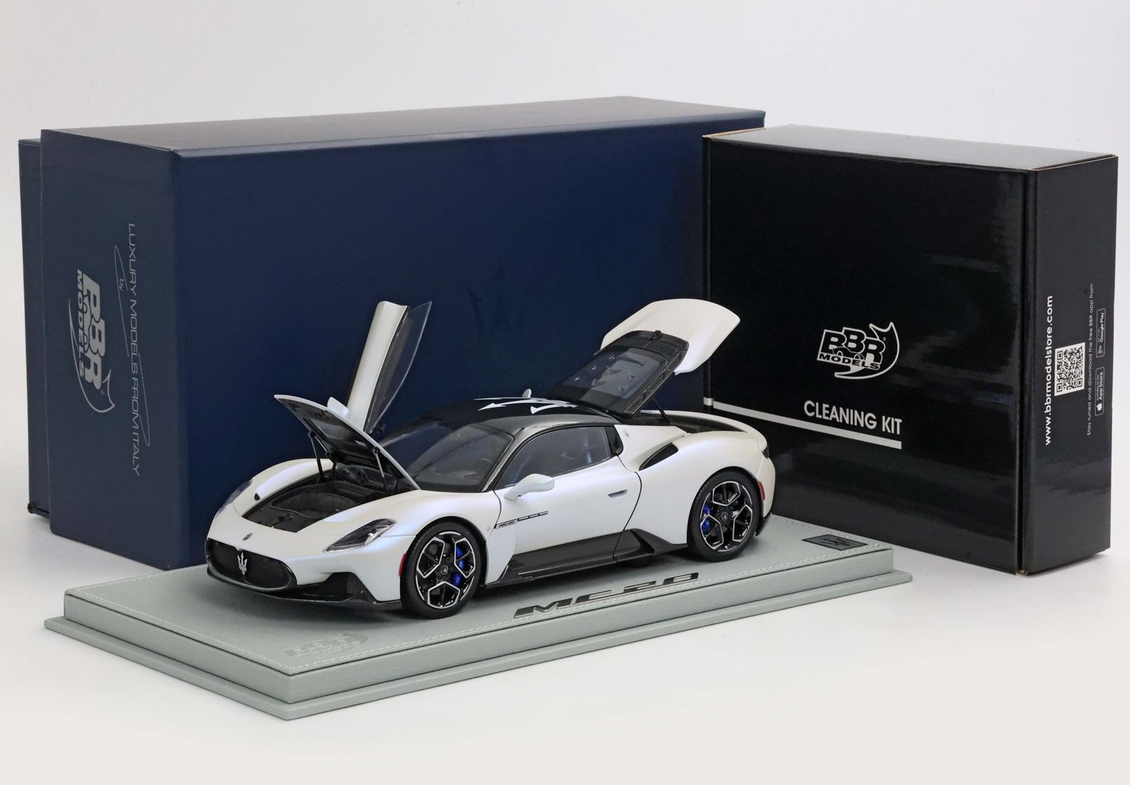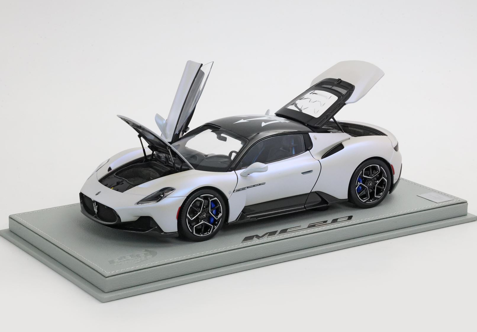 BBR propone un modello Die-Cast, completamente apribile. Il cofano del bagagliaio anteriore e il vano motore sono dotati di cerniere ma anche di pistoni oleodinamici che permettono l'apertura e soprattutto la chiusura con delicatezza. Ben visibile sulla livrea la bandiera italiana sul colore di base Bianco Audace.