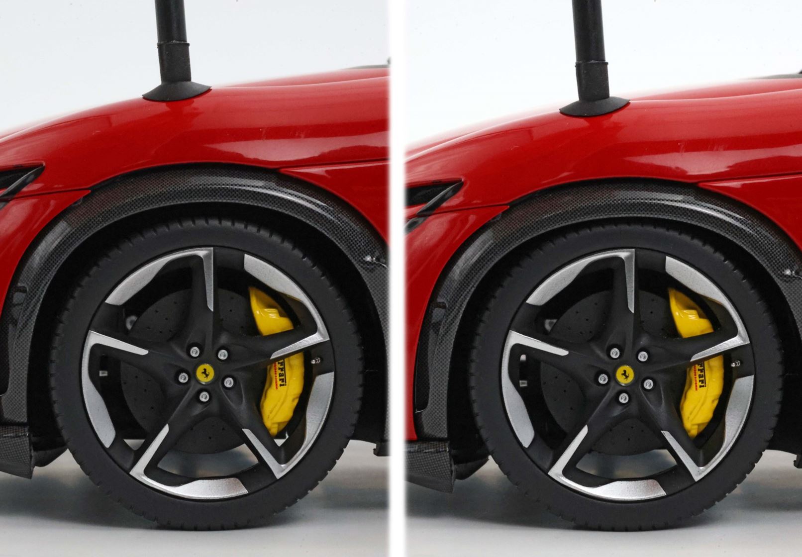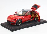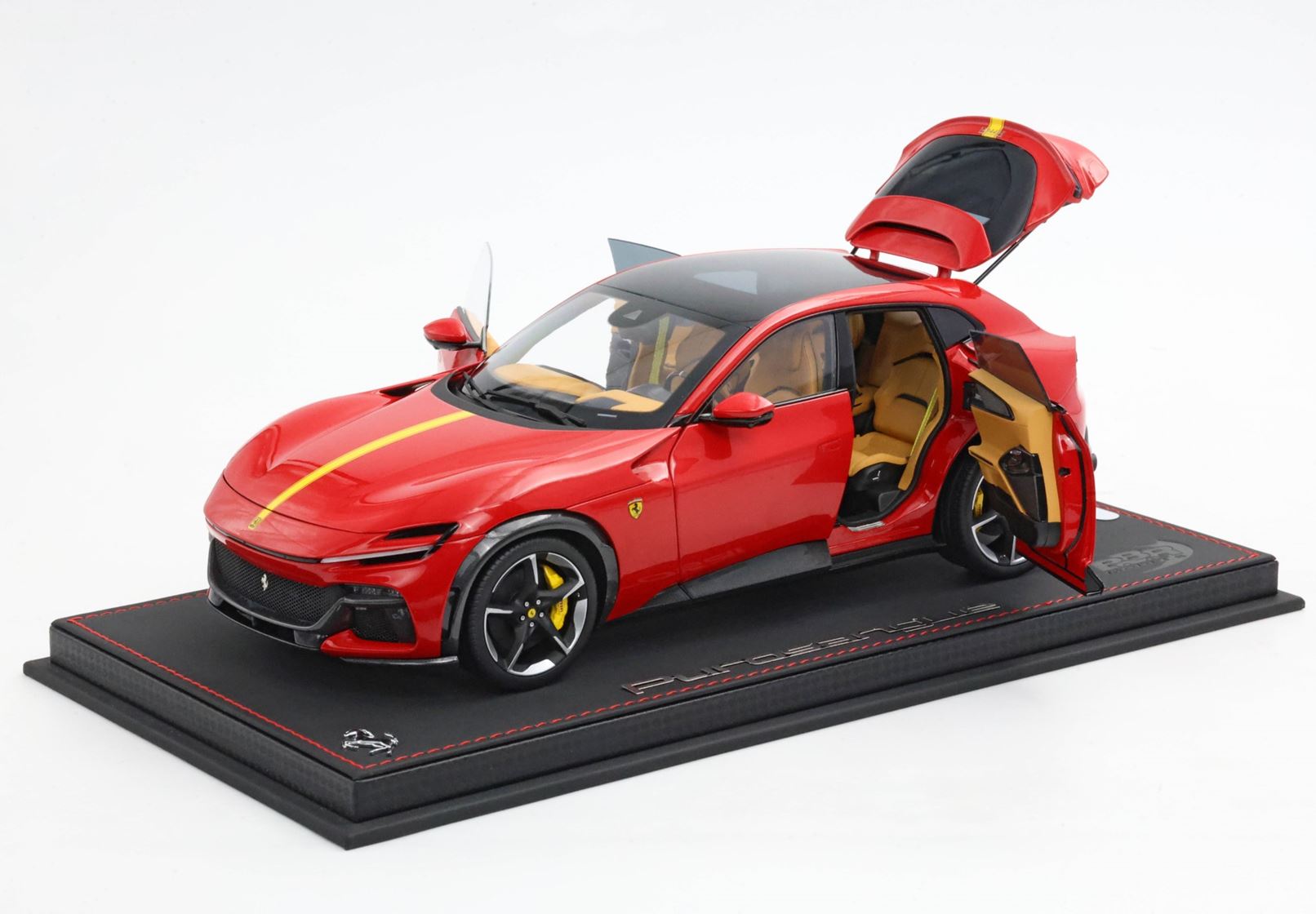 Esclusiva mondiale di Purosangue in scala 1/18 diecast completamente apribile. Rendono unico il modello firmato BBR, una fedele riproduzione dell’aperture di porte e cofani (tramite pistoncini telescopici) ma anche la possibilità di aprire braccioli interni e tappo benzina. Parti in metallo e abs si alternano a fotoincisioni e decals per un risultato di alta qualità. Quattro ruote realmente ammortizzate e sterzanti con due diversi tipi di cerchi: l’interruttore sul fondo permette inoltre di direzionare le ruote posteriori in direzione parallela o opposta. Tutto come nell'auto da strada ma racchiuso in pochi centimetri. Versione con tetto panoramico.