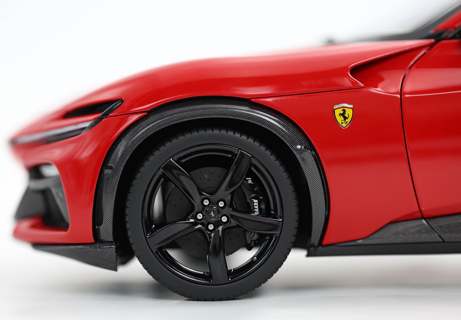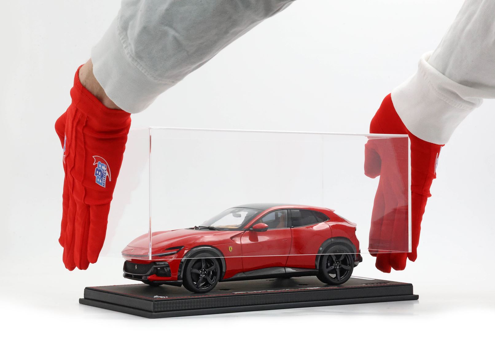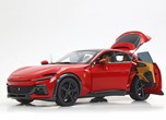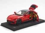 Esclusiva mondiale di Purosangue in scala 1/18 diecast completamente apribile. Rendono unico il modello firmato BBR, una fedele riproduzione dell’aperture di porte e cofani (tramite pistoncini telescopici) ma anche la possibilità di aprire braccioli interni e tappo benzina. Parti in metallo e abs si alternano a fotoincisioni e decals per un risultato di alta qualità. Quattro ruote realmente ammortizzate e sterzanti con due diversi tipi di cerchi: l’interruttore sul fondo permette inoltre di direzionare le ruote posteriori in direzione parallela o opposta. Tutto come nell'auto da strada ma racchiuso in pochi centimetri. Versione con tetto panoramico.