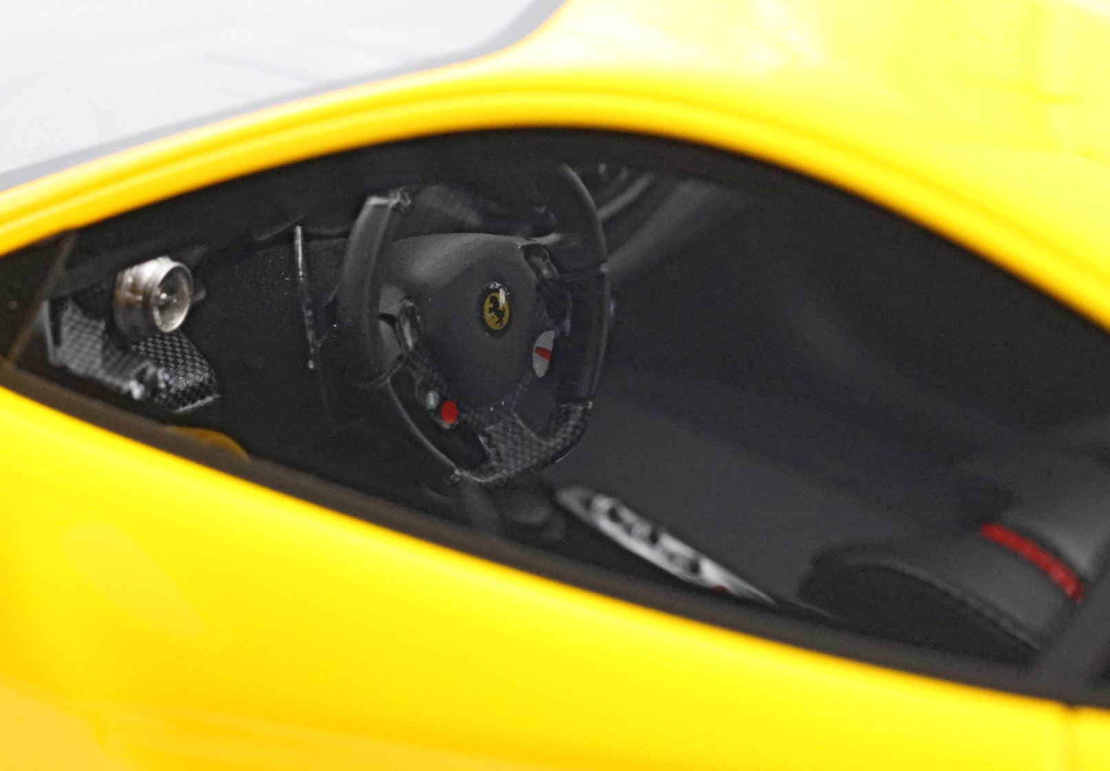 Vi segnaliamo un'innovazione sugli scudetti Ferrari presenti sul modello, che ora sono fedelmente riprodotti con la cromatura esterna: fedeli e uguali all'originale, ma in scala 1:18.