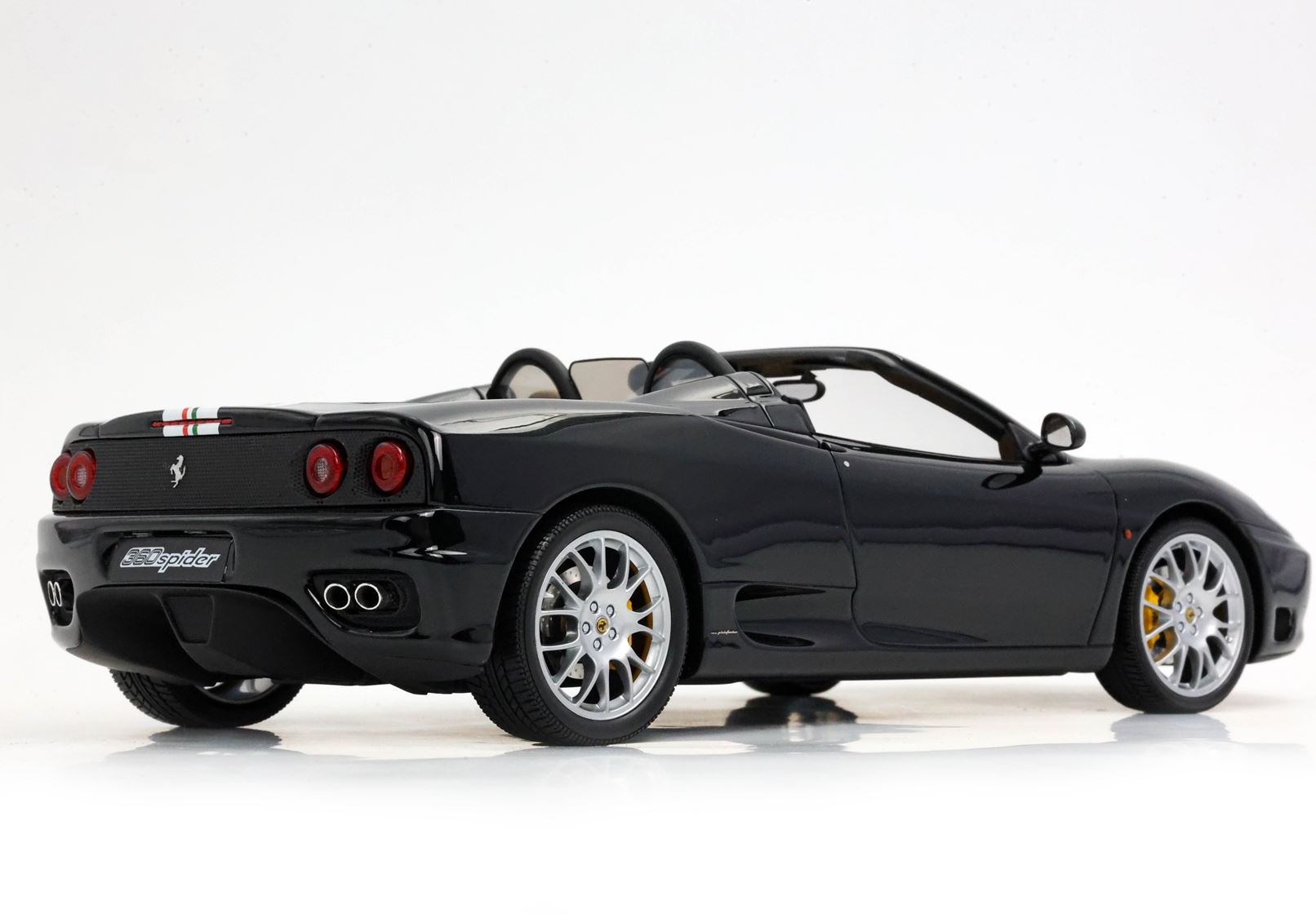 L’efficacia aerodinamica dela 360 Spider è stata raggiunta grazie alle doppie aperture separate dei radiatori che permettevano il passaggio dell’aria sotto la vettura e fino agli estrattori ricavati sotto la coda.