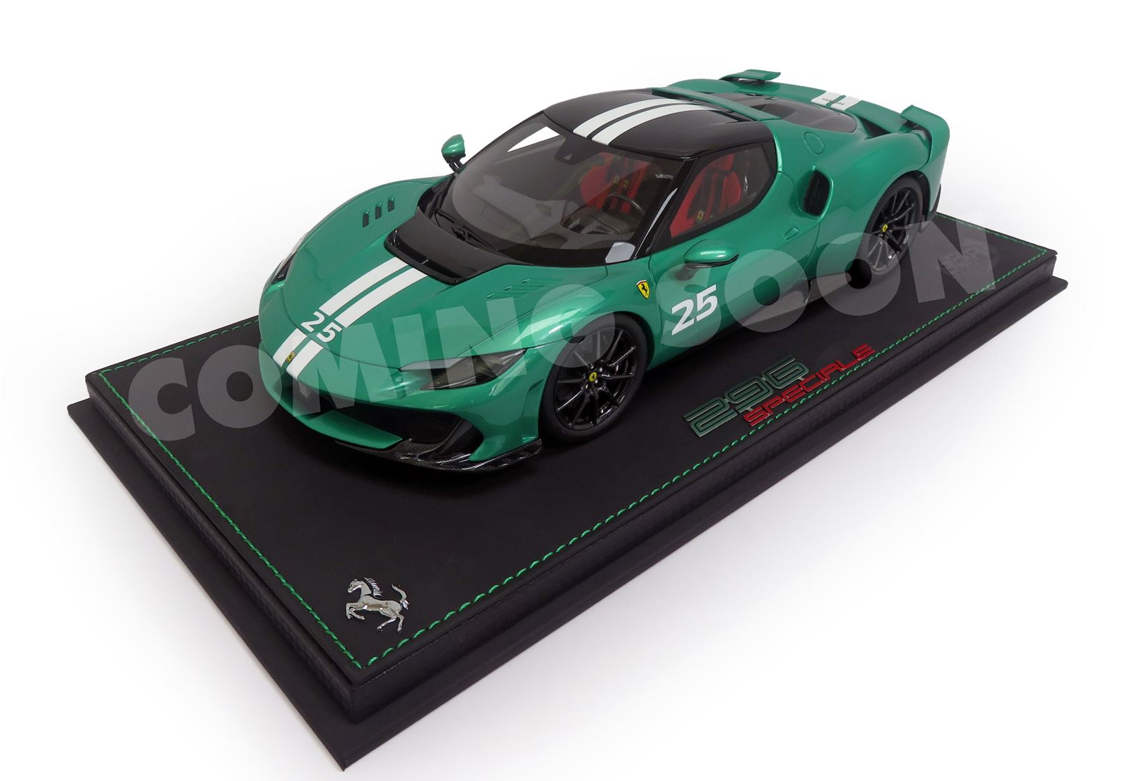 La Ferrari 296 Speciale rappresenta l'evoluzione di 296 GTB. Presentata nell'aprile del 2025 - in contemporanea con la versione A, cioè Aperta, dotata di tetto rigido retrattile - questa berlinetta ibrida plug-in propone una riduzione di peso significativa e un incremento della potenza complessiva. Il design è immediatamente riconoscibile rispetto alla versione GTB grazie ad appendici aerodinamiche derivate dalla 296 Challenge, come l'aero damper anteriore, che convoglia l'aria dal fondo al cofano per stabilizzare l'avantreno. Al posteriore spiccano invece le side wings che riducono la resistenza e aumentano il carico verticale con un incremento del 20% rispetto alla 296 GTB. La motorizzazione rimane un V6 biturbo abbinato a un motore elettrico MGU-K, ma la potenza complessiva sale a 880 CV, con un aumento di 50 CV rispetto alla 296 GTB.