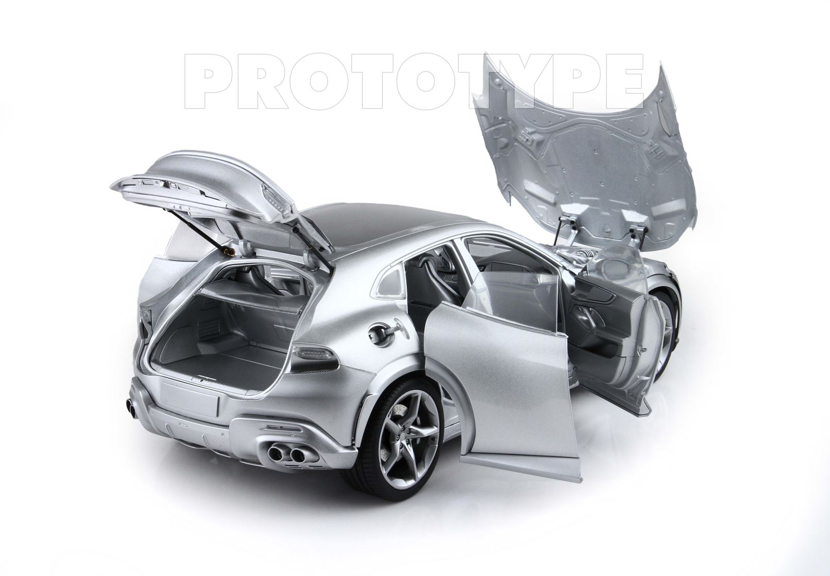 Esclusiva mondiale di Purosangue in scala 1/18 diecast completamente apribile. Rendono unico il modello firmato BBR, una fedele riproduzione dell’aperture di porte e cofani (tramite pistoncini telescopici) ma anche la possibilità di aprire braccioli interni e tappo benzina. Parti in metallo e abs si alternano a fotoincisioni e decals per un risultato di alta qualità. Quattro ruote realmente ammortizzate e sterzanti con due diversi tipi di cerchi: l’interruttore sul fondo permette inoltre di direzionare le ruote posteriori in direzione parallela o opposta. Tutto come nell'auto da strada ma racchiuso in pochi centimetri.
