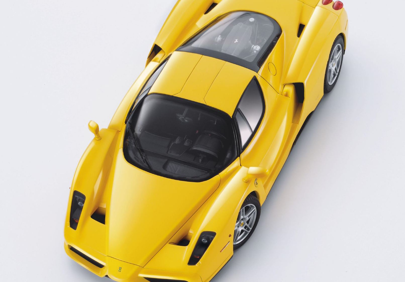 L'omaggio del Cavallino Rampante al suo fondatore. Ferrari Enzo è stata lanciata nel 2002, anno che segna una tappa importante nel cammino trionfale di Micheal Schumacher in F1: dopo soli 11 gp il tedesco ha conquistato il mondiale piloti. Costruita in 399 esemplari è nata dal transfer tecnologico dalle macchine in pista a quelle stradali La carrozzeria Pininfarina ha armonizzato stile e funzionalità, proponendo una linea di forte carisma con frontale liberamente ispirato alla f2002 guidata da Schumacher in F1.