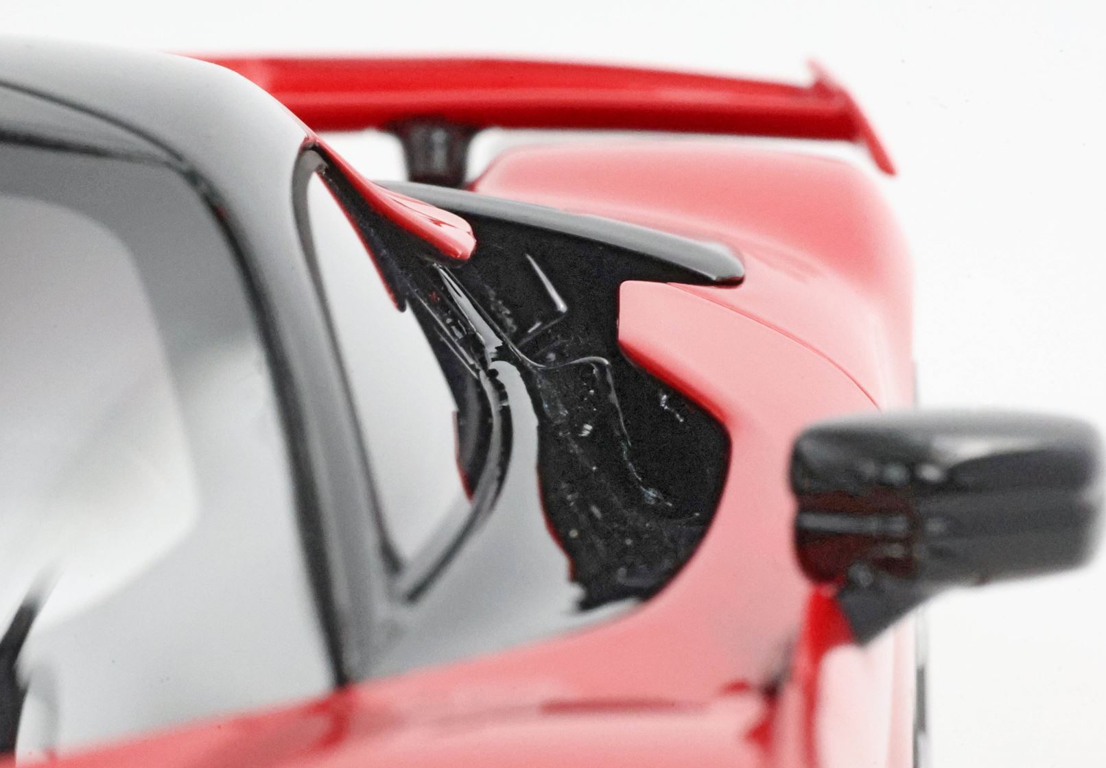 Qualche esempio? Le appendici che fiancheggiano il tetto e scendono verso i vetri laterali sono state realizzate grazie ad una procedura di stampa perfezionata nel tempo. I risultati sono delle appendici staccate dalla linea dell'auto identiche all'auto reale. Insomma BBR ha superato anche la difficoltà di modellare gli spazi "vuoti" e non ha scelto la strada più semplice di un unico blocco di resina "pieno".