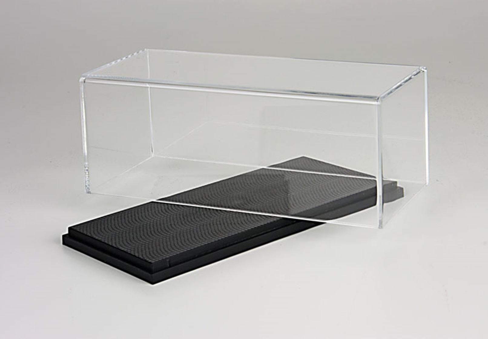 Vetrine in plexiglass disponibili per i modelli in scala 1/43, vendute su varie basi riproducenti vari tipi di asfalti o situazioni gare.